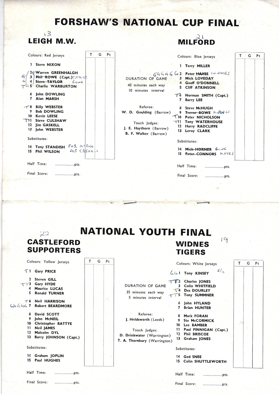 Slight creasing, dogears. Score/team changes in ink on team line up page (as per scan)