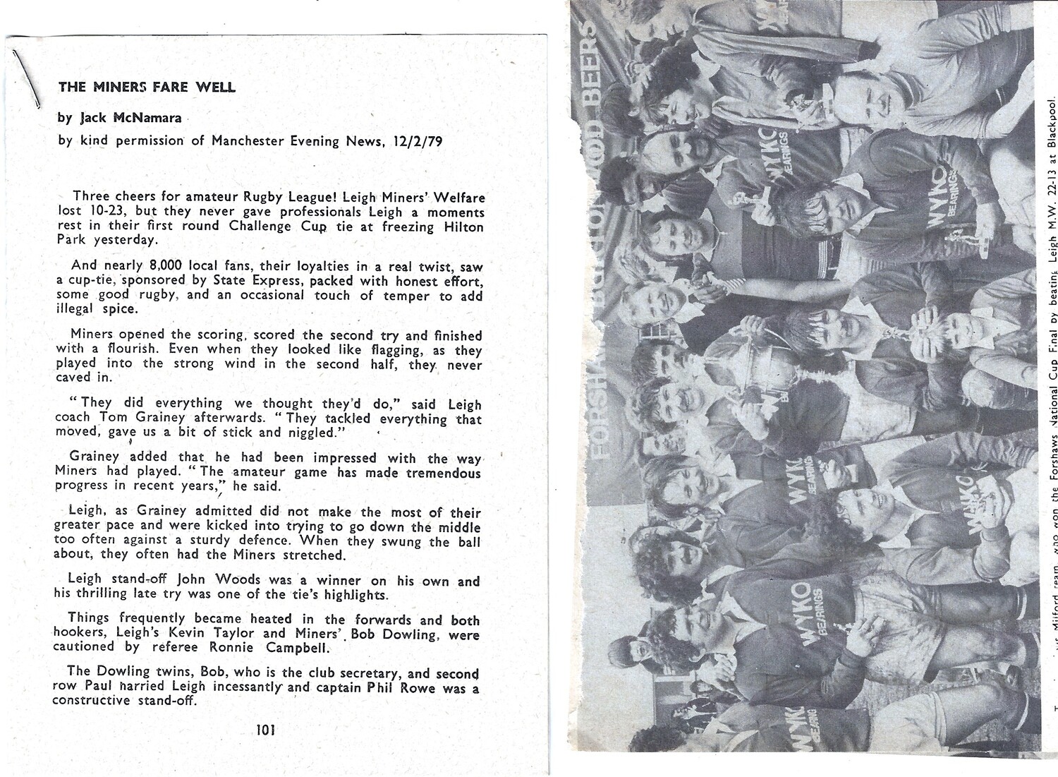 1978 Leigh Miners Welfare v Milford (27/05/1978) BARLA Forshaw's National Cup Final Rugby League Programme and cuttings