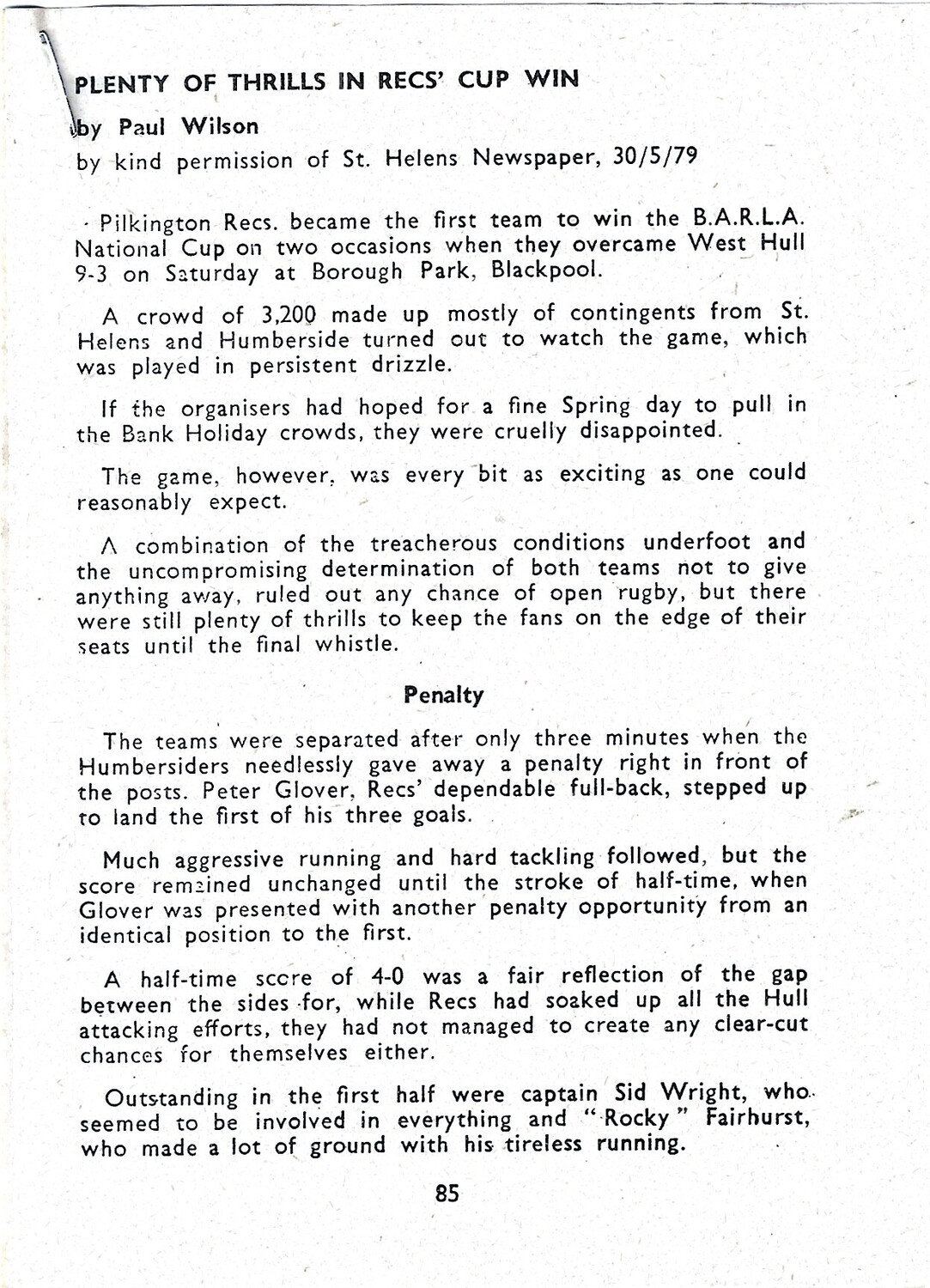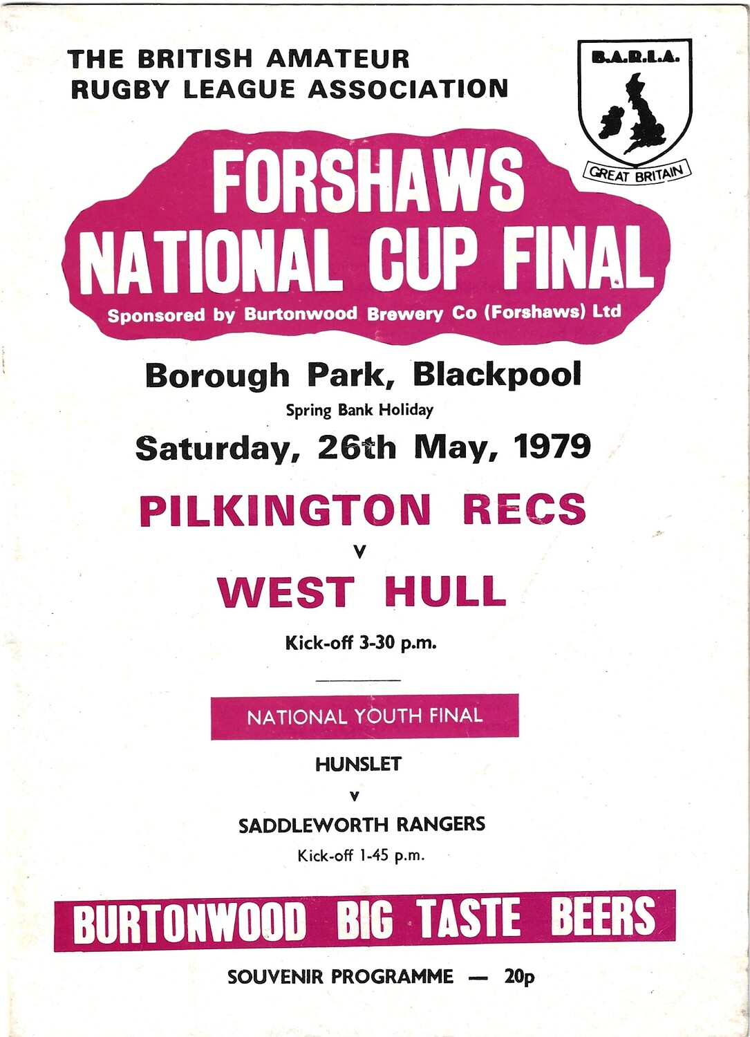1979 Pilkington Recs v West Hull (26/05/1979) BARLA Forshaw's National Cup Final Rugby League Programme and cuttings