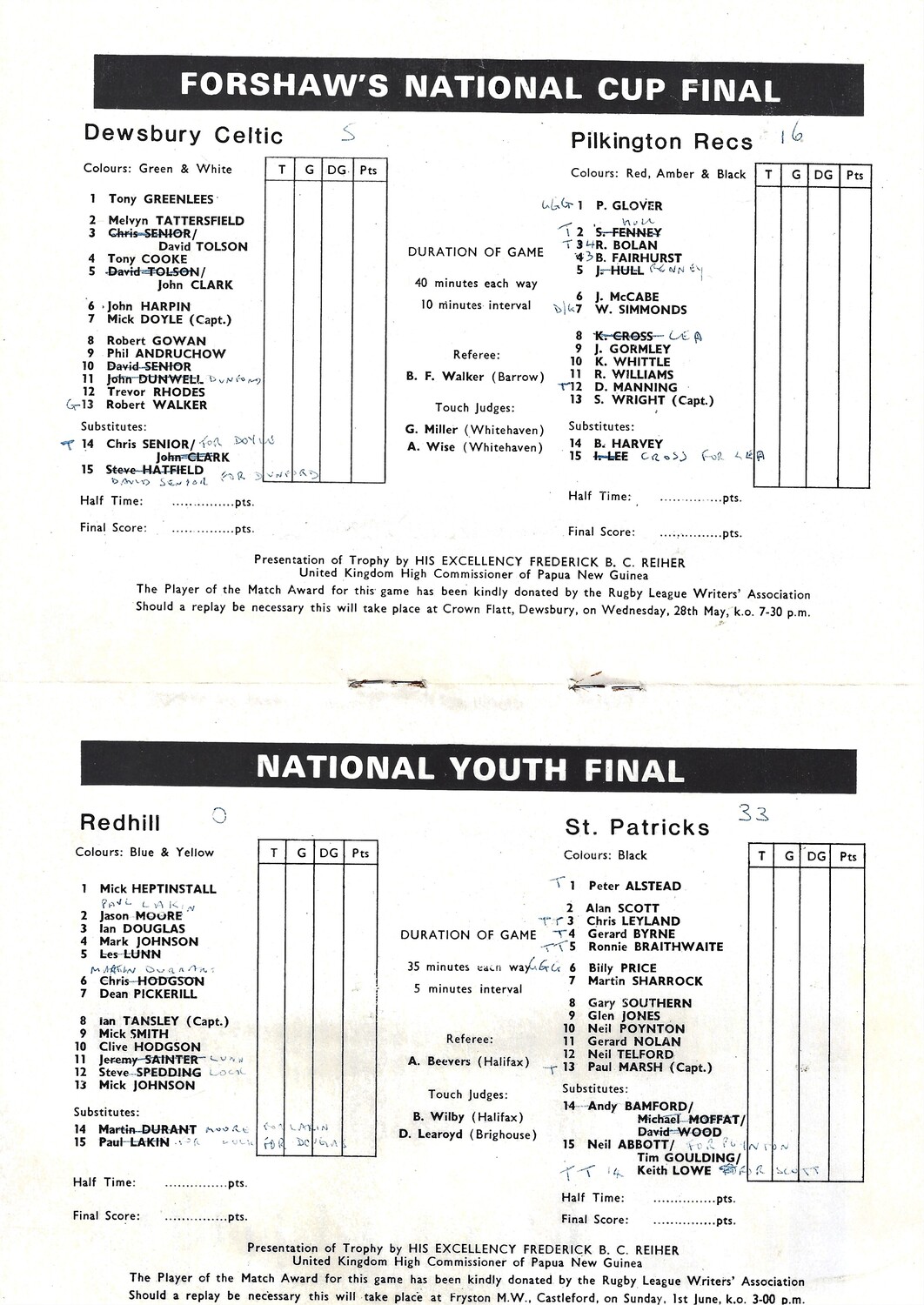 1980 Dewsbury Celtic v Pilkington Recs (24/05/1980) BARLA Forshaw's National Cup Final Rugby League Programme and cuttings