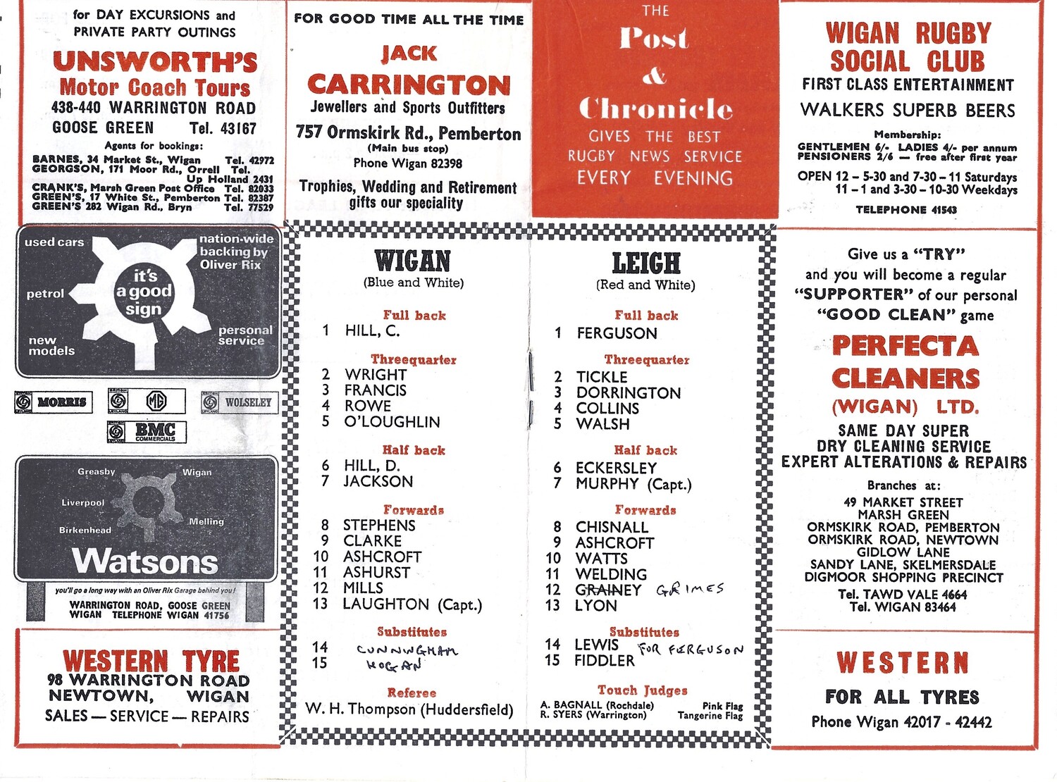 1969/70 Wigan v Leigh (16/12/1969) BBC2 Floodlight Competition Final Rugby League Programme