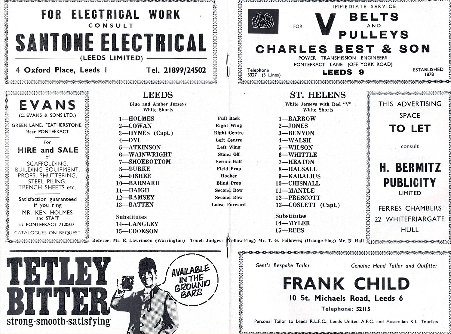 1970/71 Leeds v St. Helens BBC2 Floodlight Competition Final Rugby League Programme