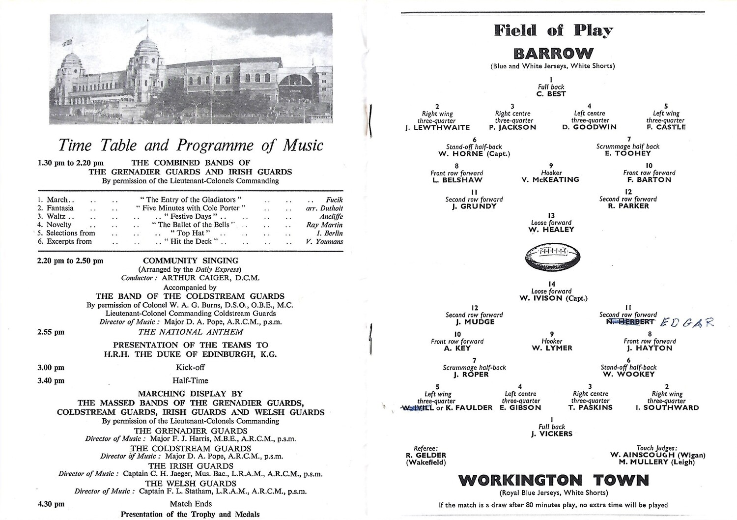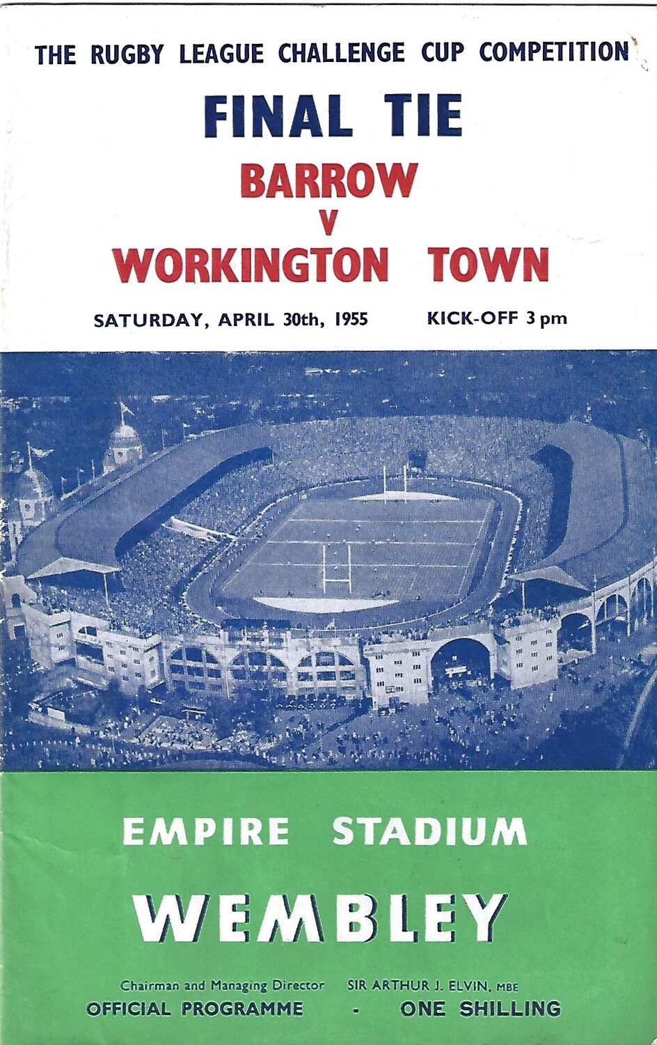 1955 Barrow v Workington Town Rugby League Challenge Cup Final Programme