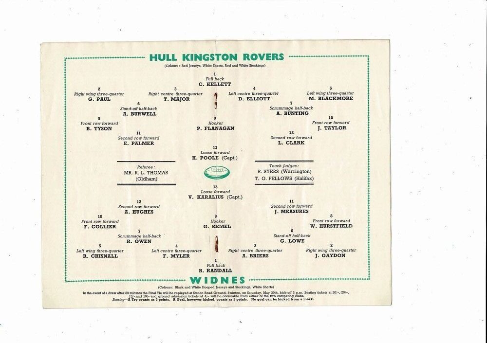 1964 Hull Kingston Rovers v Widnes Rugby League Challenge Cup Final Programme