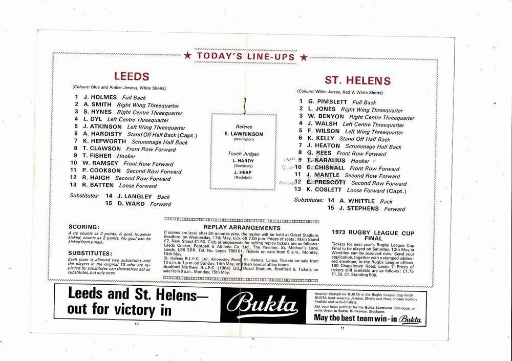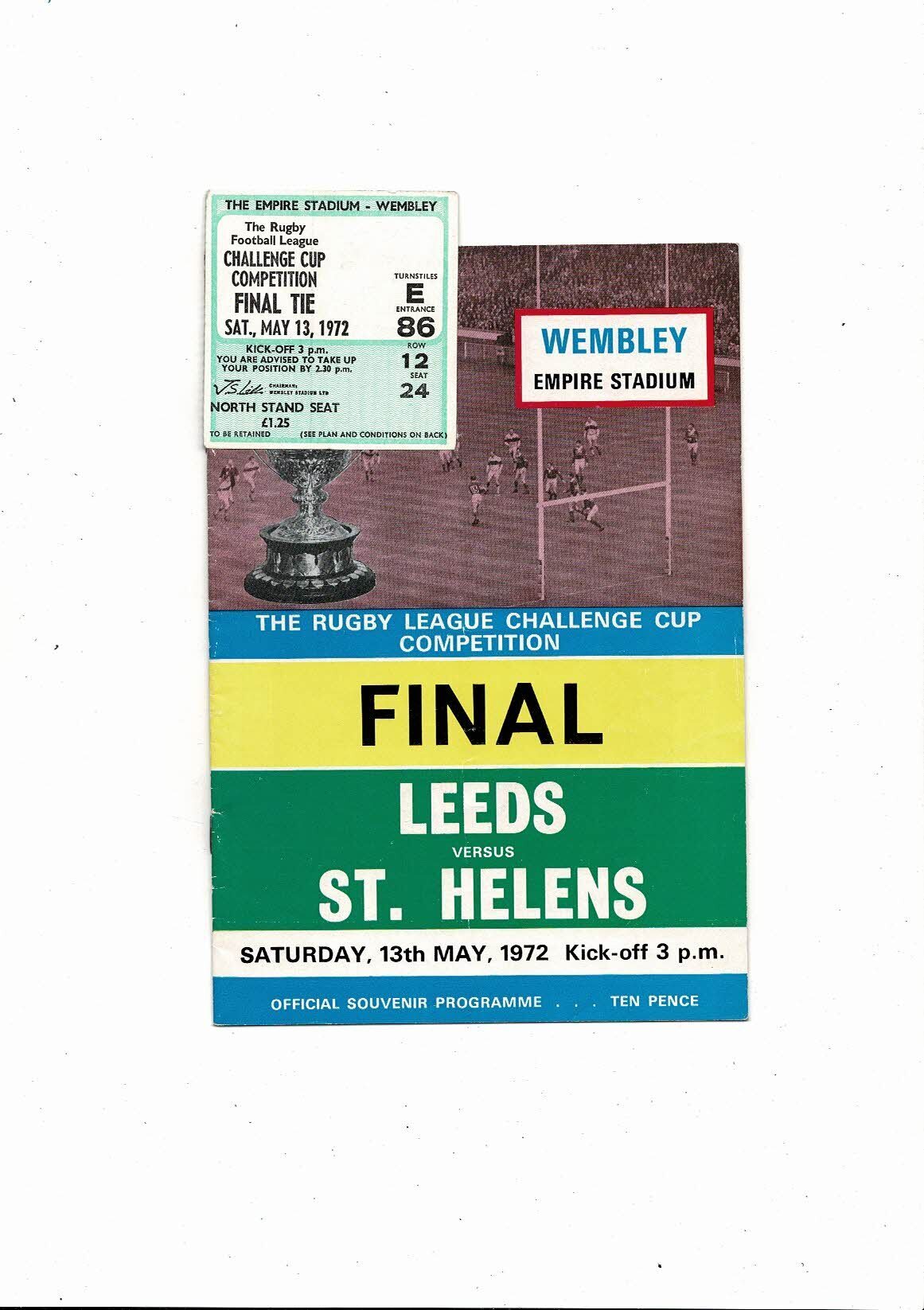 1972 Leeds v St. Helens Rugby League Challenge Cup Final Programme & Match ticket