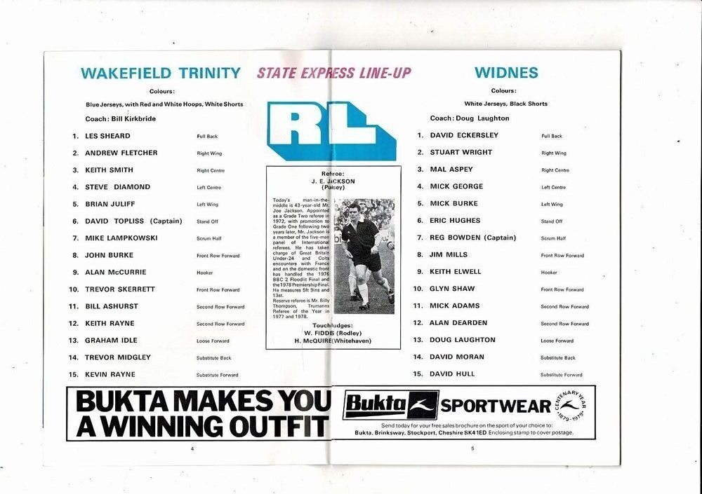 1979 Wakefield Trinity v Widnes Rugby League Challenge Cup Final Programme