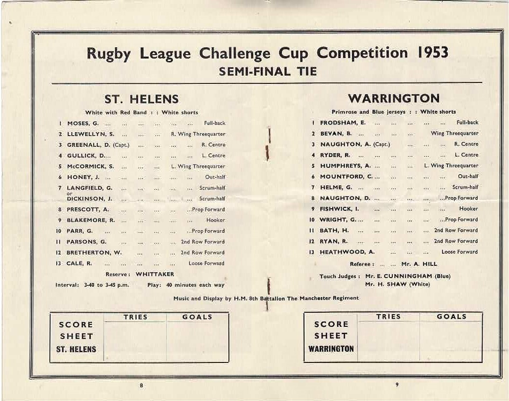 1953 St. Helens v Warrington (28/03/1953) Rugby League Challenge Cup Semi Final Programme