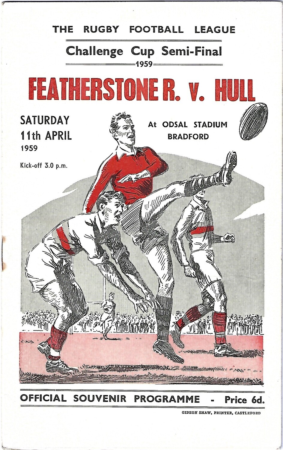 1959 Featherstone Rovers v Hull Rugby League Challenge Cup Semi Final Programme