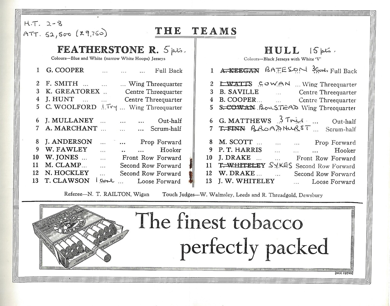 Slight creasing/discolouration front/rear cover, rusty staples, score/team changes on team page