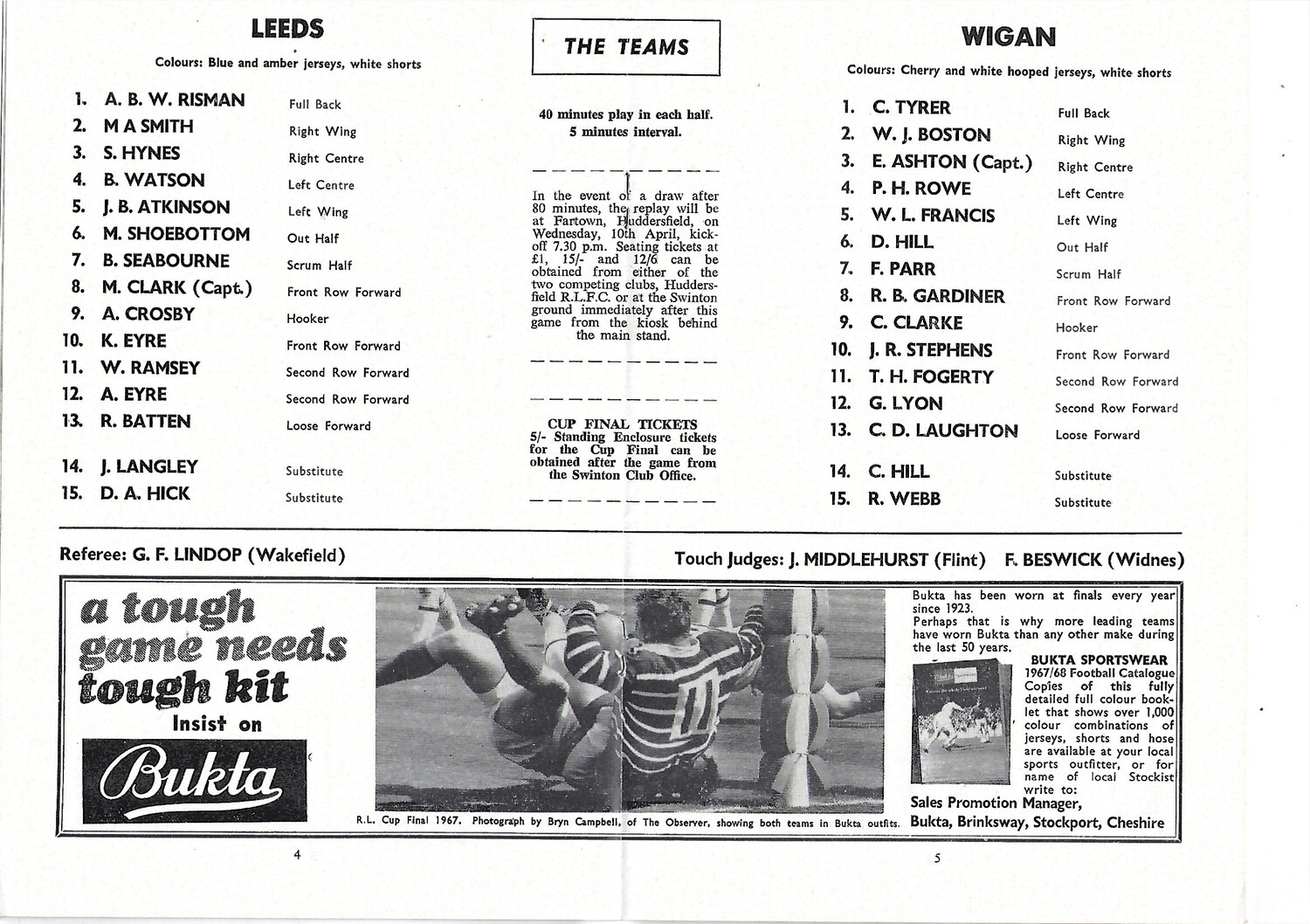1968 Leeds v Wigan Rugby League Challenge Cup Semi Final Programme