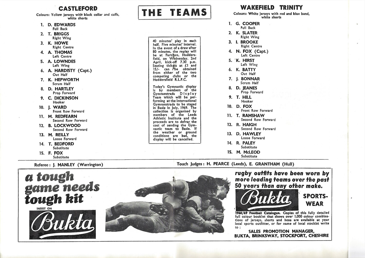 1969 Castleford v Wakefield Trinity Rugby League Challenge Cup Semi Final Programme