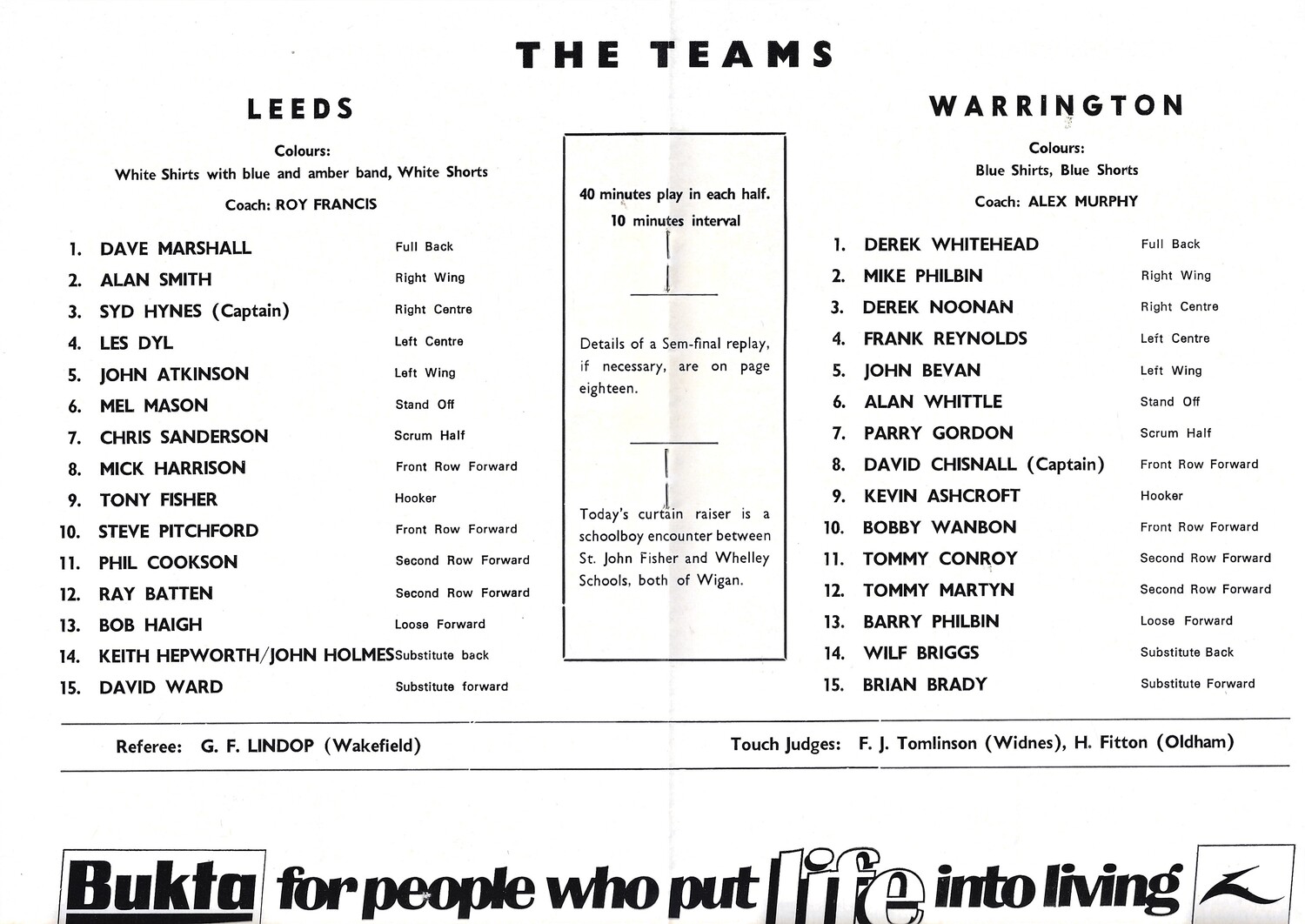 1975 Leeds v Warrington (22/03/1975) Rugby League Challenge Cup Semi Final Rugby LeagueProgramme