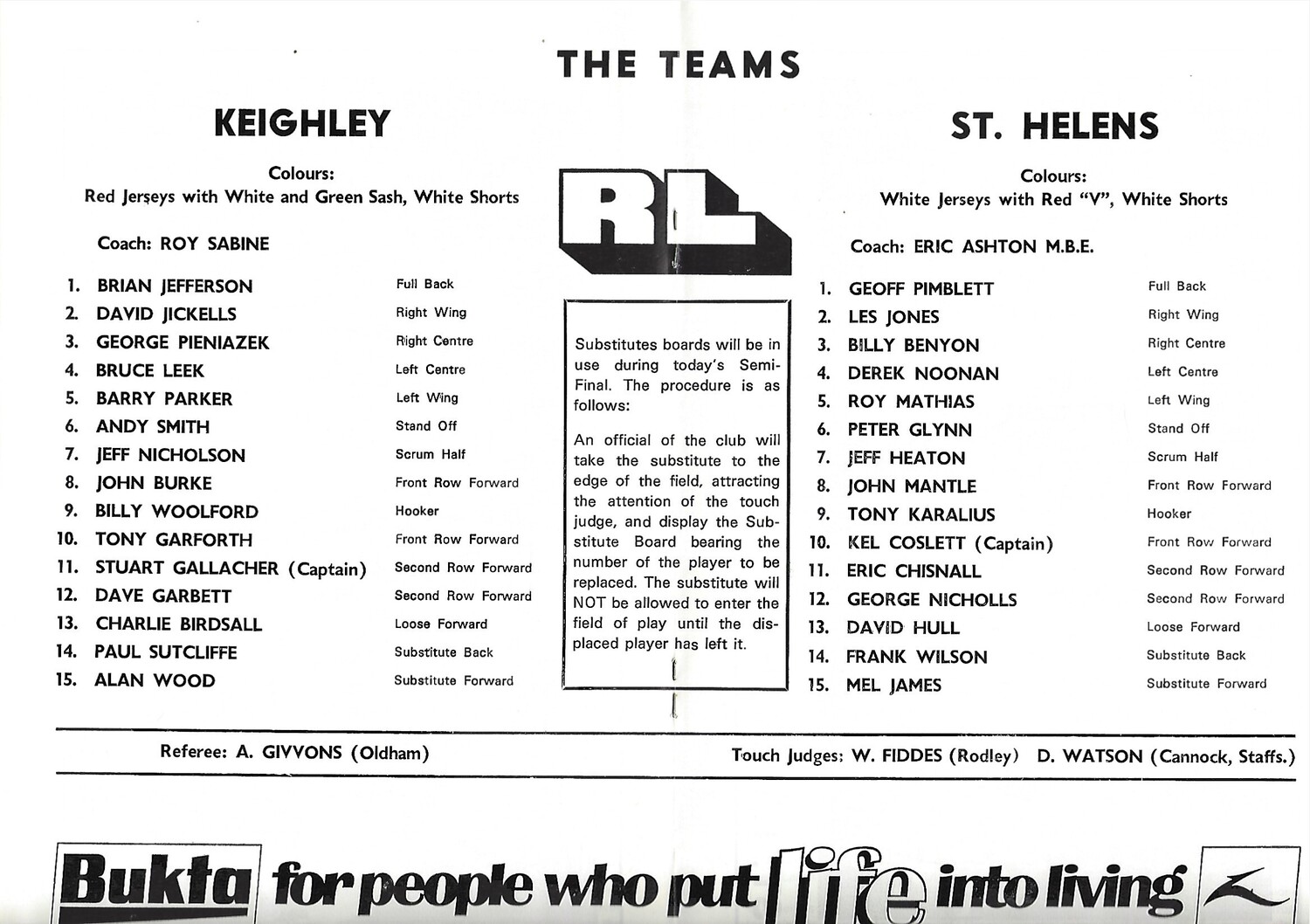 1976 Keighley v St. Helens Rugby League Challenge Cup Semi Final Programme
