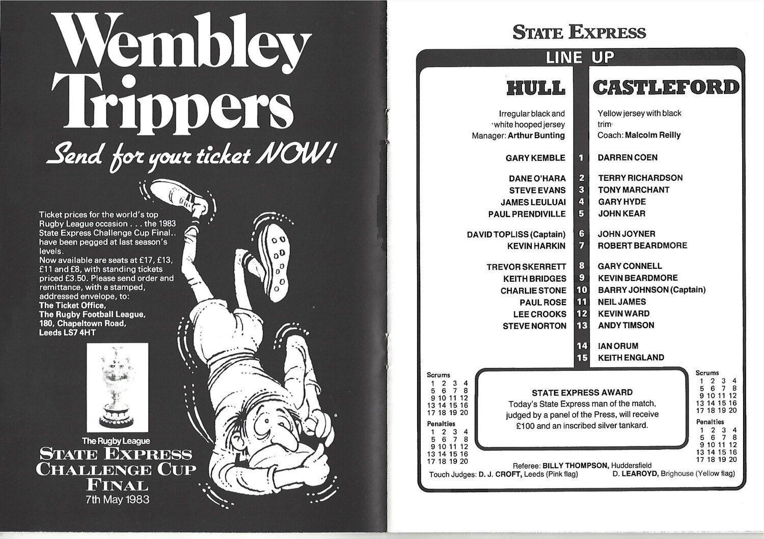 1983 Hull v Castleford Rugby League Challenge Cup Semi Final Programme