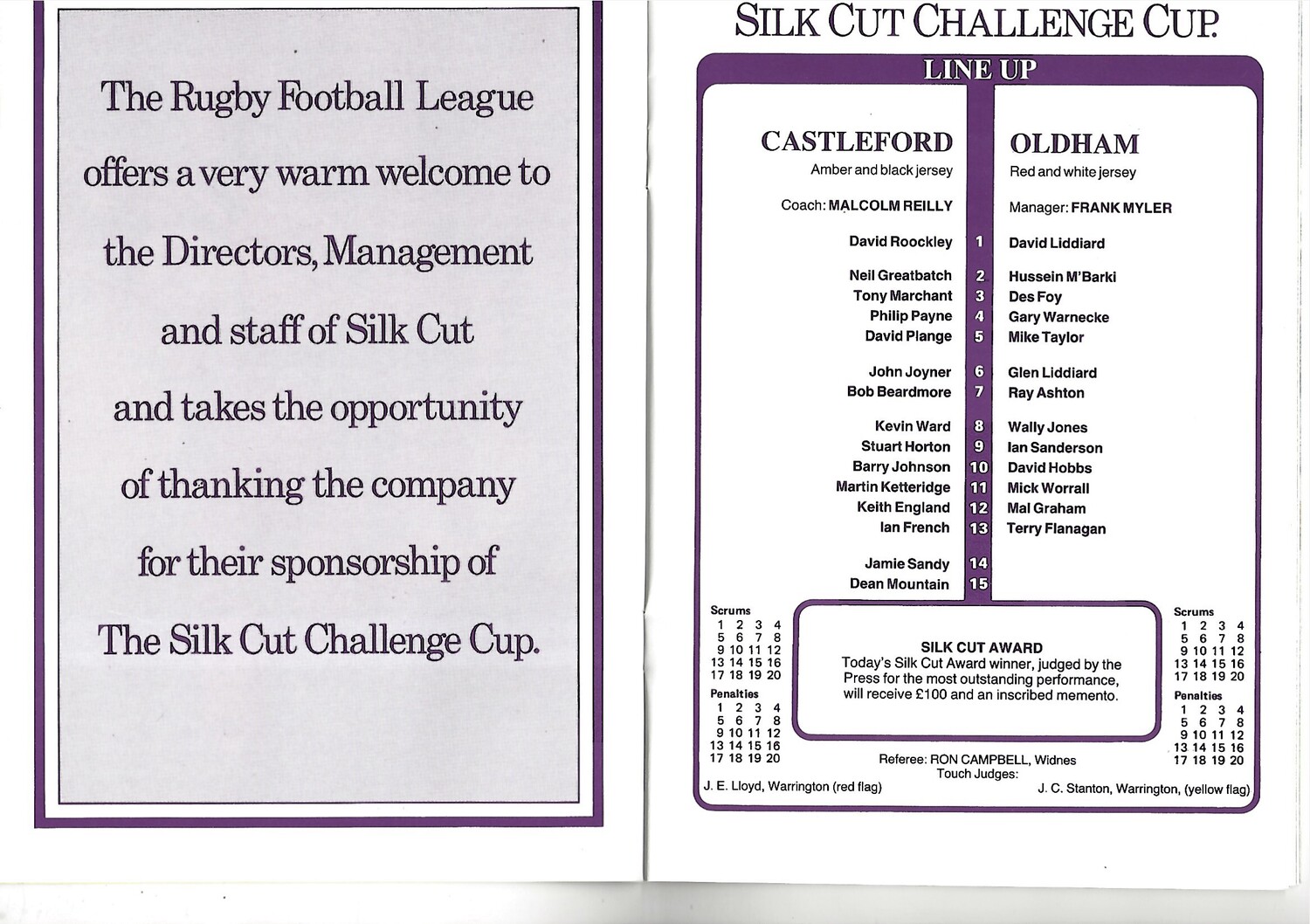 1986 Castleford v Oldham Rugby League Challenge Cup Semi Final Programme