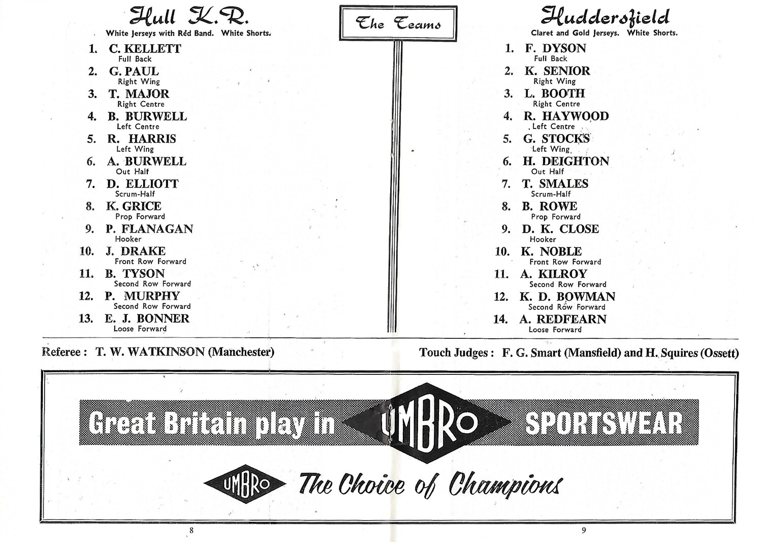 1962 Hull Kingston Rovers v Huddersfield Eastern Championship Final Rugby League Programme