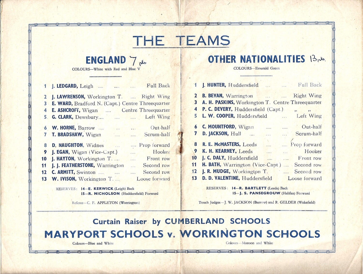 Creasing, discolouration, rusty staples/staining, team changes/score in ink on team line up page (as per photo)