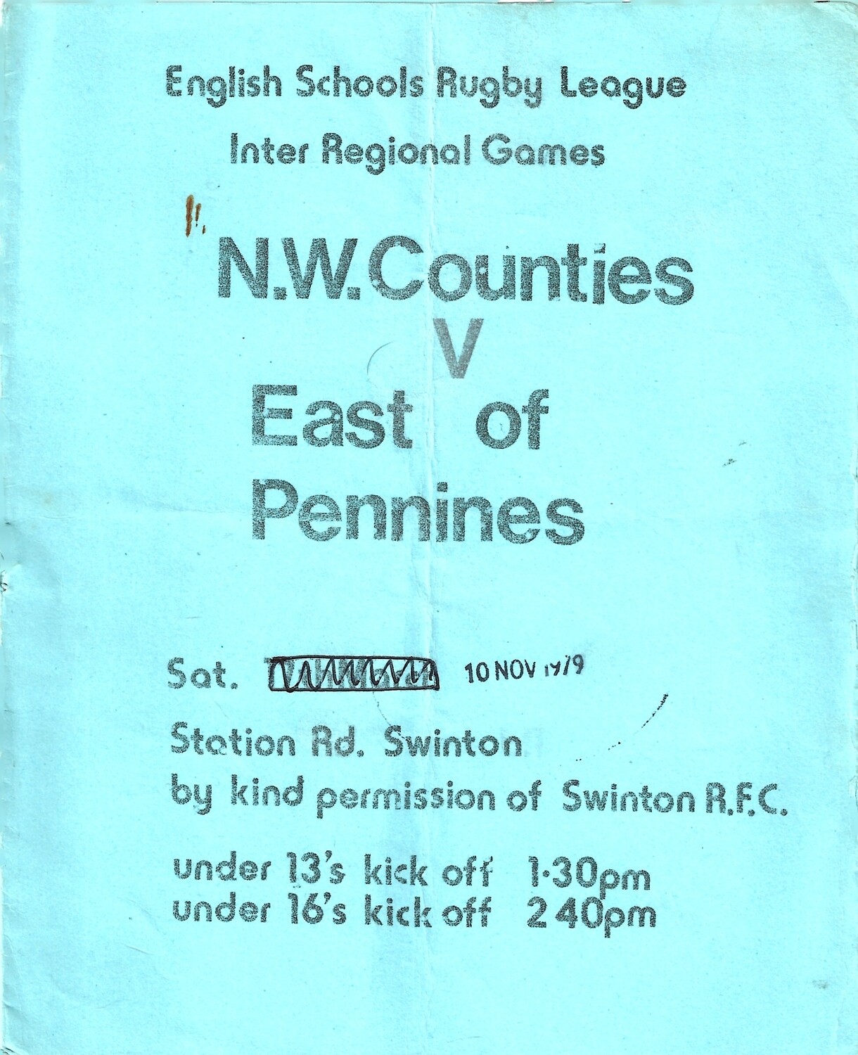 1979 N.W Counties v East of Pennines (10/11/1979) English Schools Rugby League Inter Regional Games Rugby League Programme