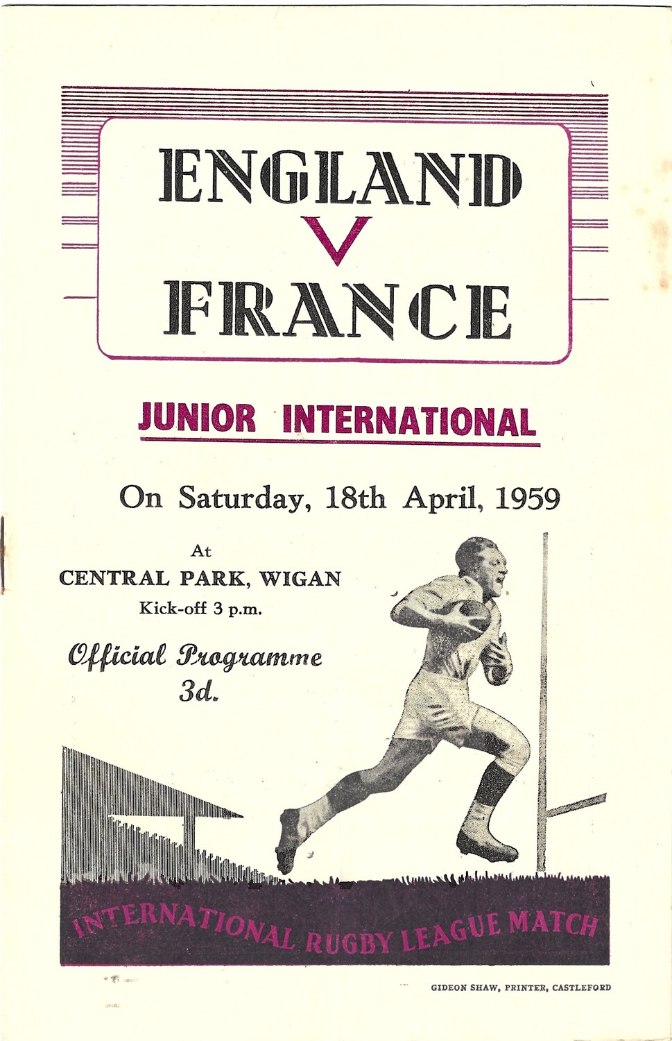 1959 England v France Junior International Match Rugby League Programme