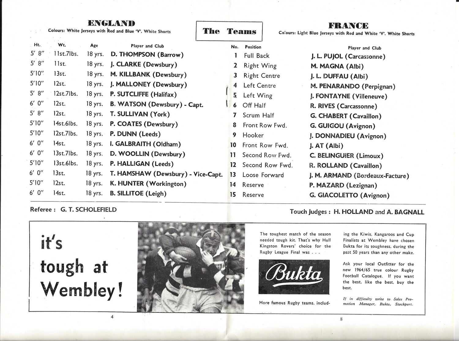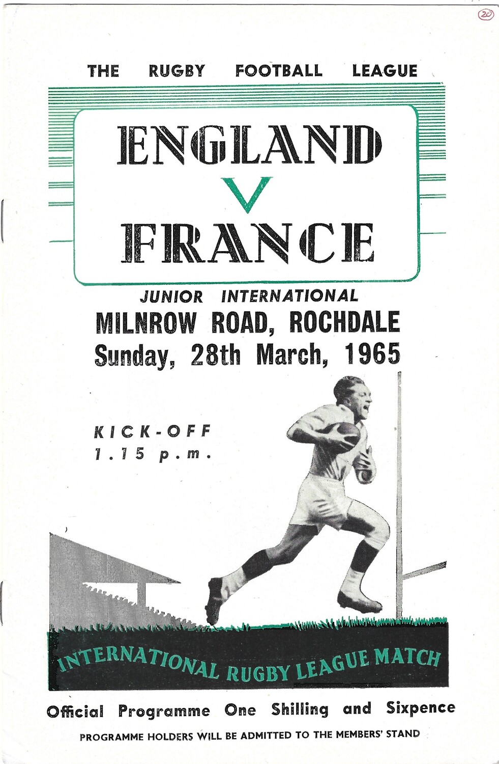 1965 England v France Junior International Match Rugby League Programme