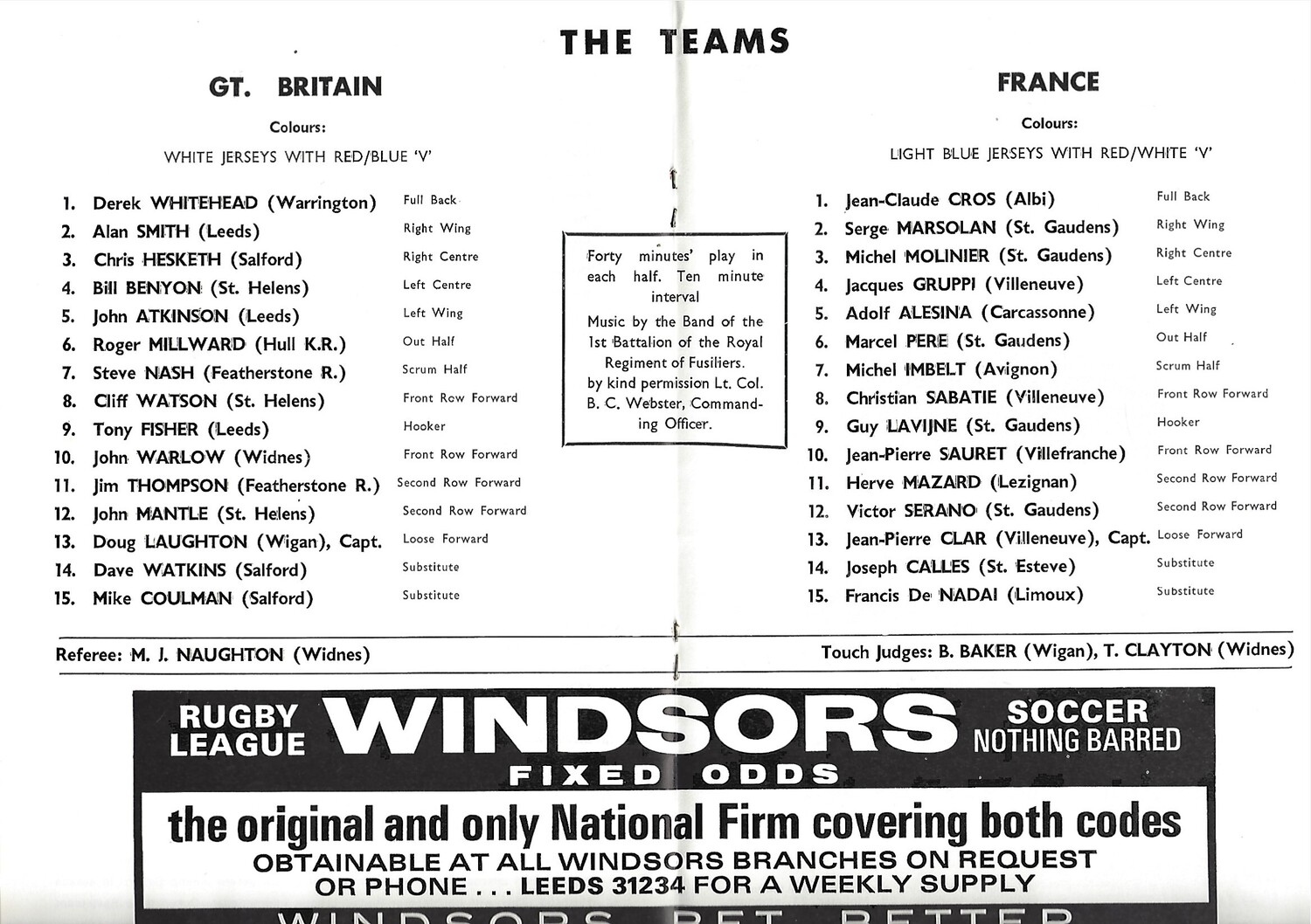 1971 Great Britain v France Rugby League Programme