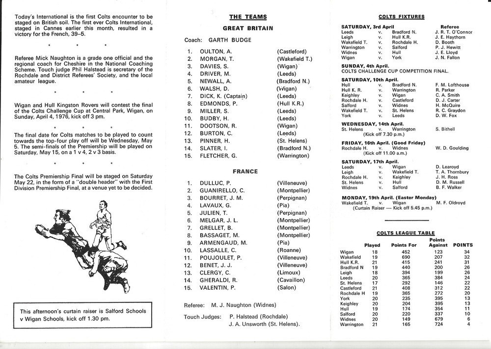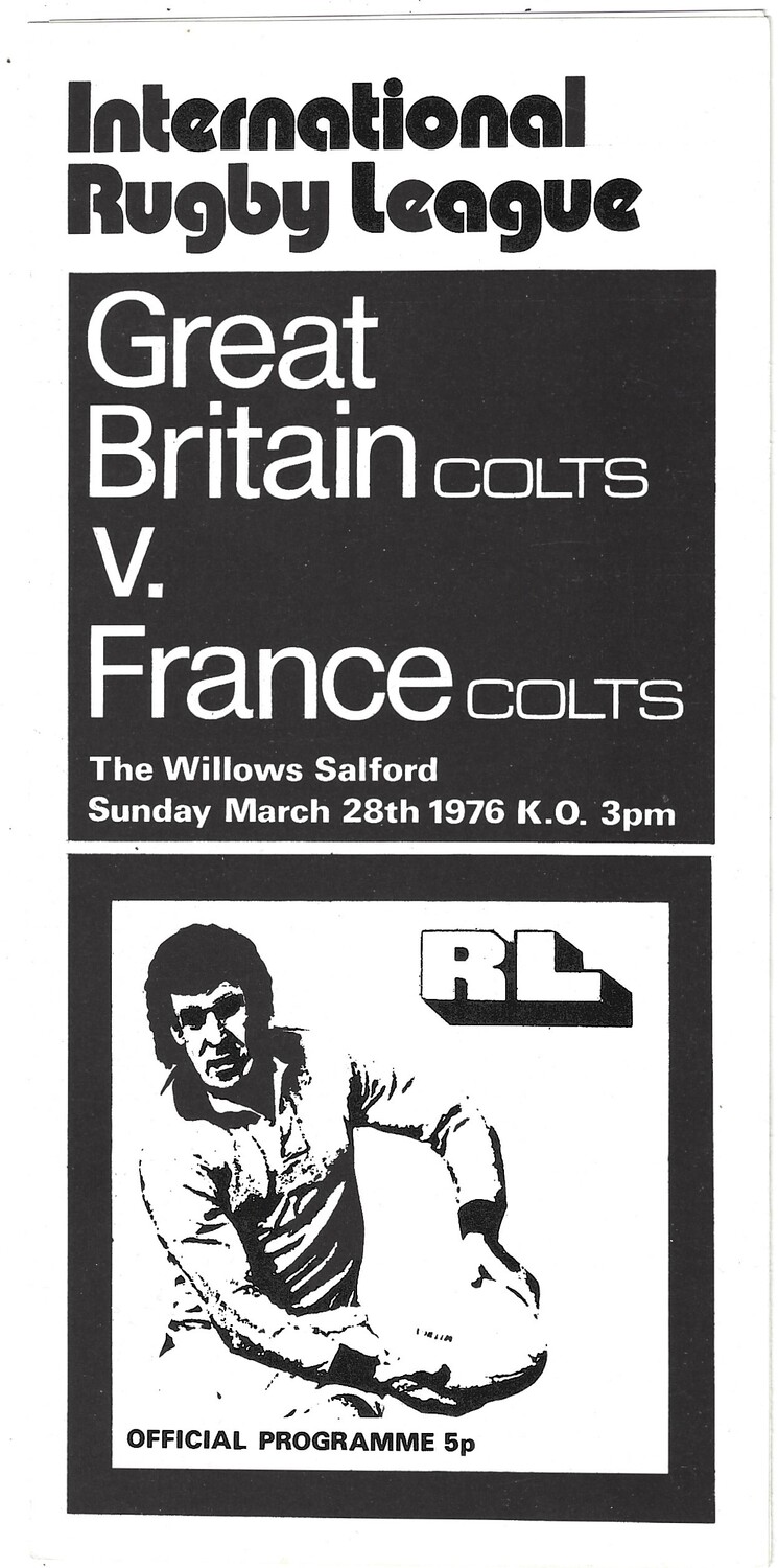 1976 Great Britain Colts v France Colts International Rugby League Programme