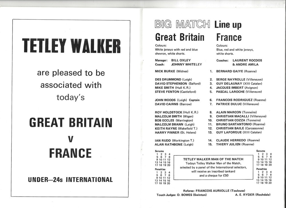 1979 Great Britain v France Under-24 International Rugby League Programme