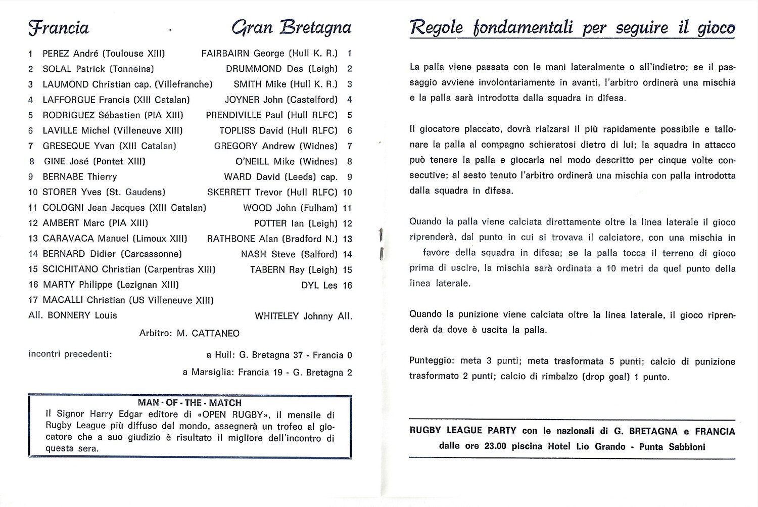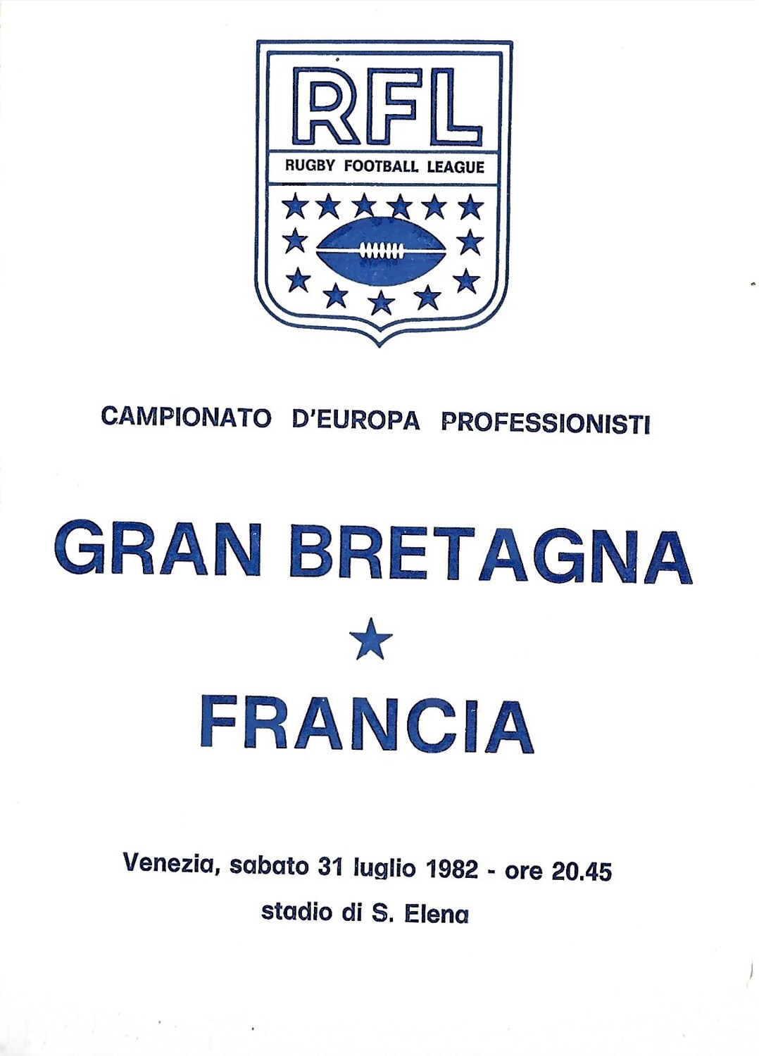 1982 Great Britain v France Rugby League Programme