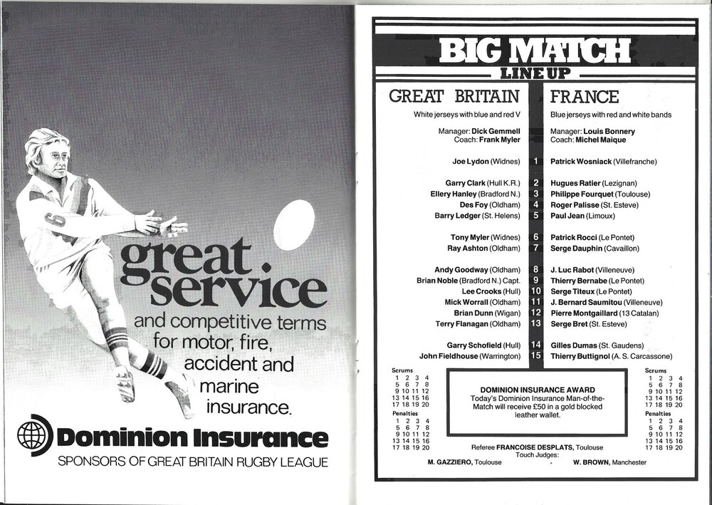 1983 Great Britain v France Under-24 International Rugby League Programme
