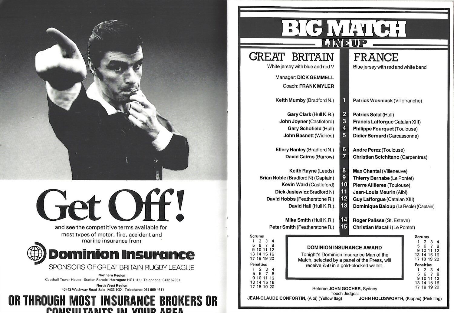 1984 Great Britain v France Rugby League Programme