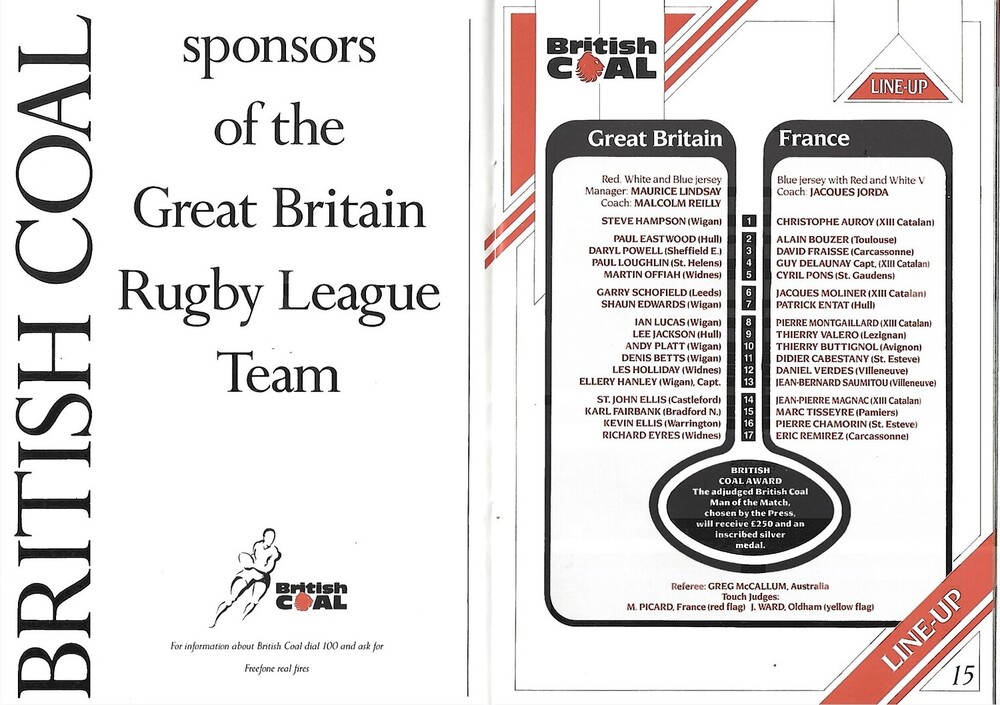 1991 Great Britain v France/Great Britain Under-21 v France Under-21 Rugby League Programme