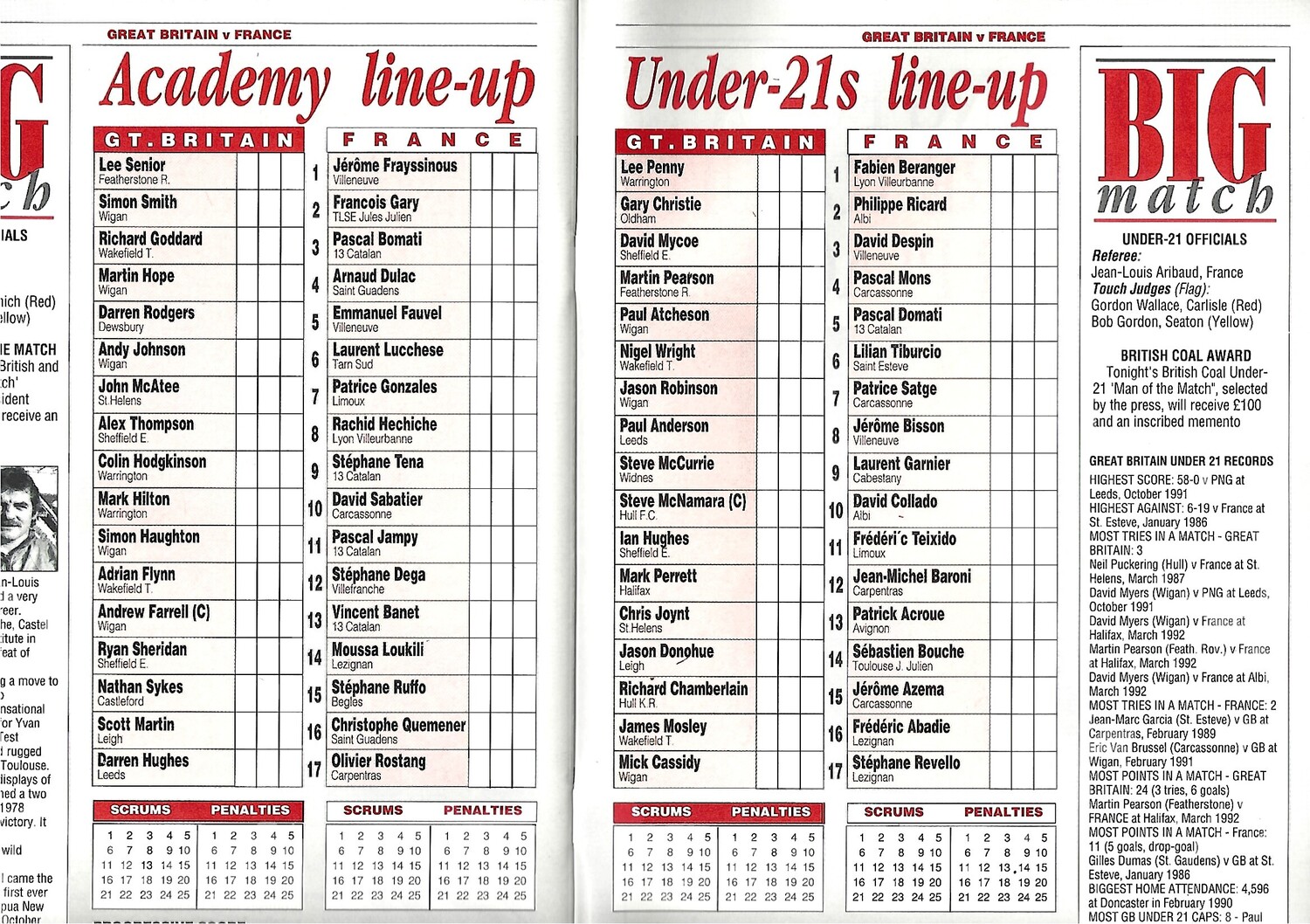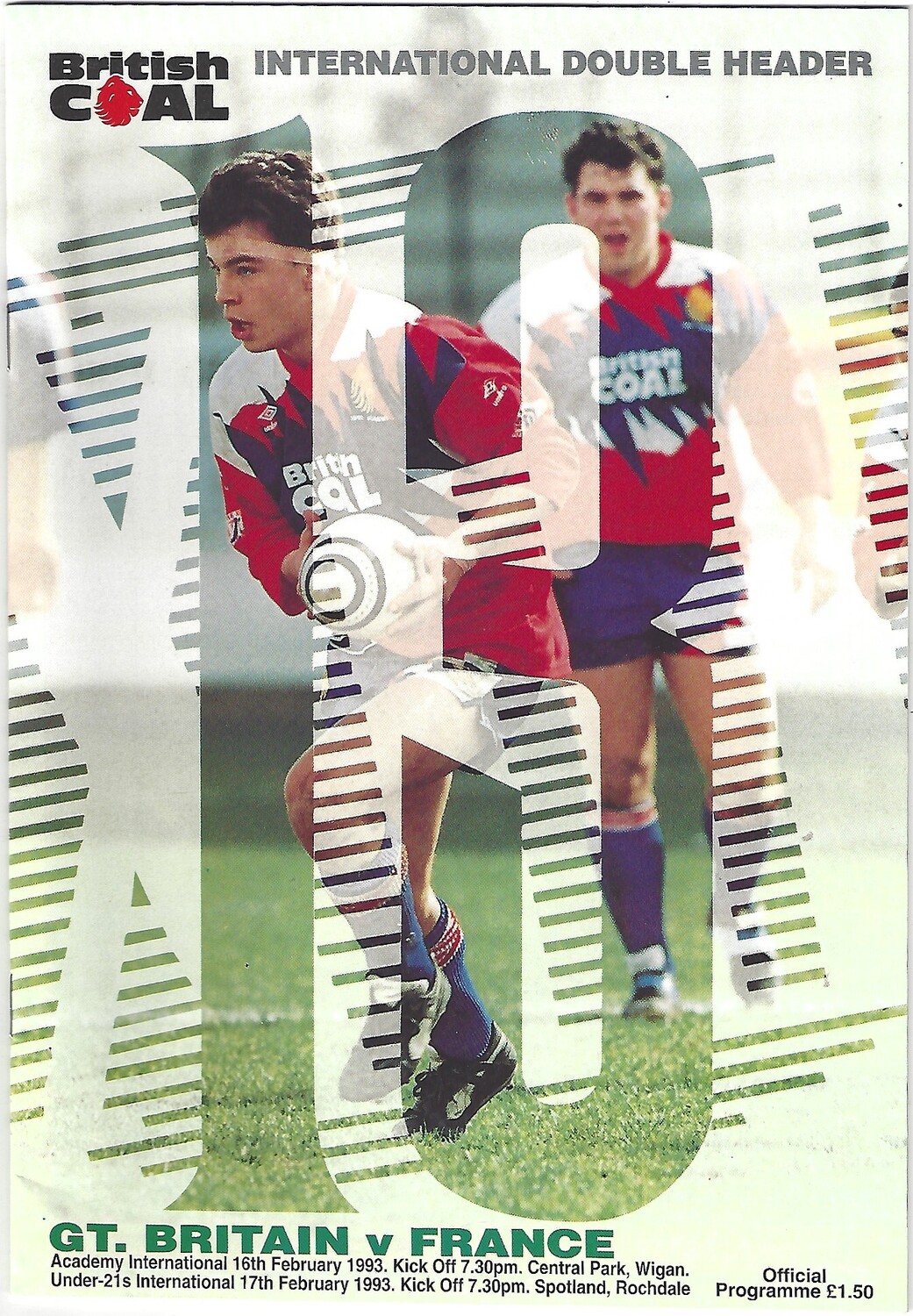1993 Great Britain Academy v France Academy Great Britain Under-21 v France Under-21 International Rugby League Programme