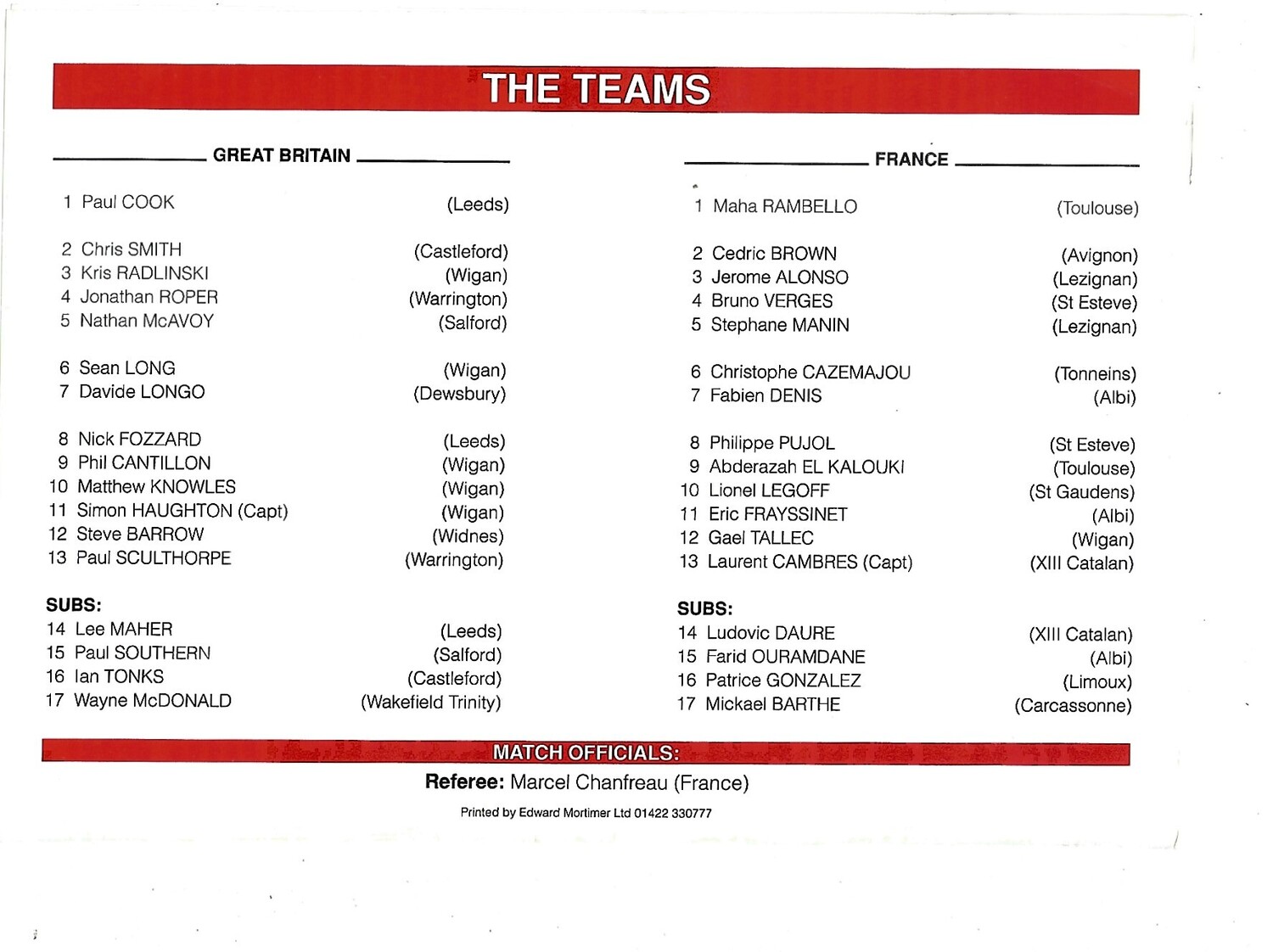 1995 Great Britain Academy v France Academy International Rugby League Programme