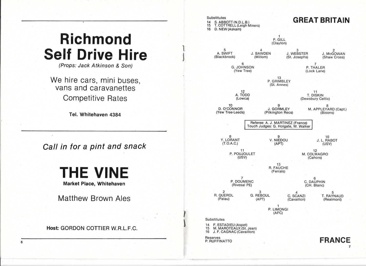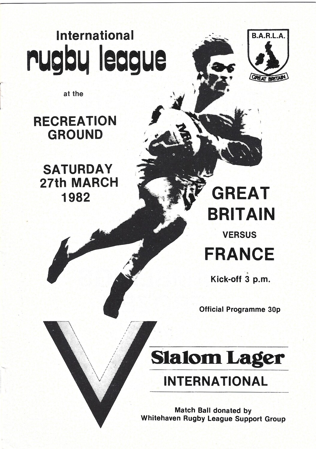 1982 Great Britain v France Amateur International Match Rugby League Programme