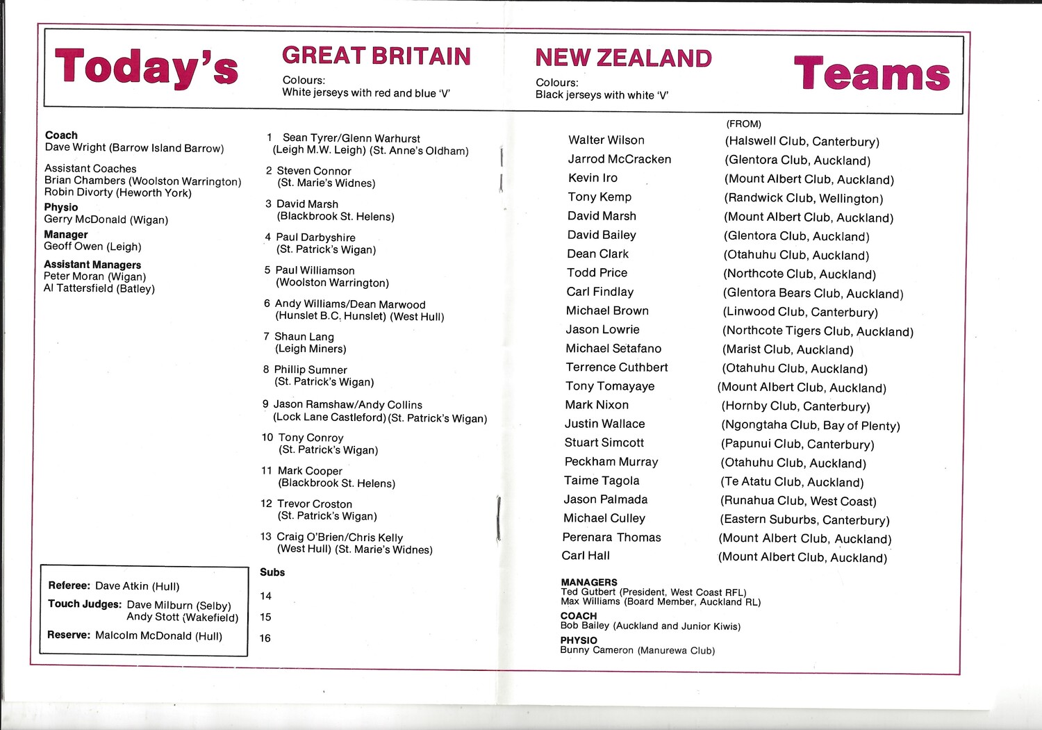 1987 Great Britain v New Zealand Amateur Youth First Test International Match Rugby League Programme