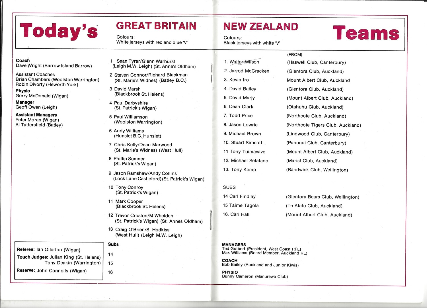 1987 Great Britain v New Zealand Amateur Youth Second Test International Match Rugby League Programme