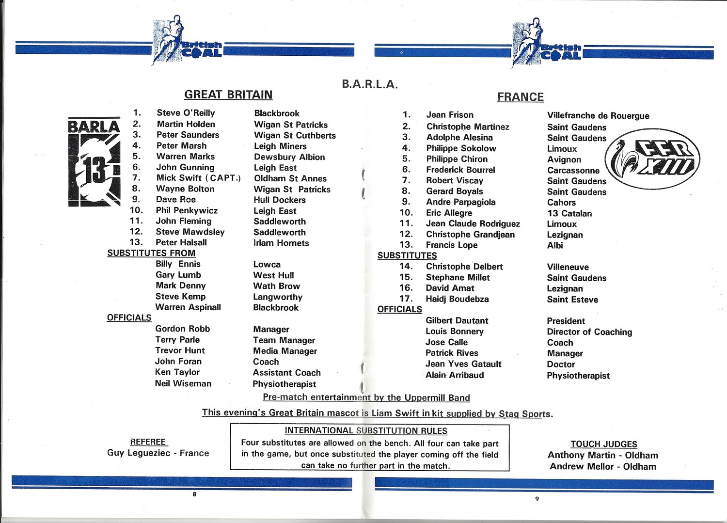 1992 Great Britain v France Amateur International Match Rugby League Programme