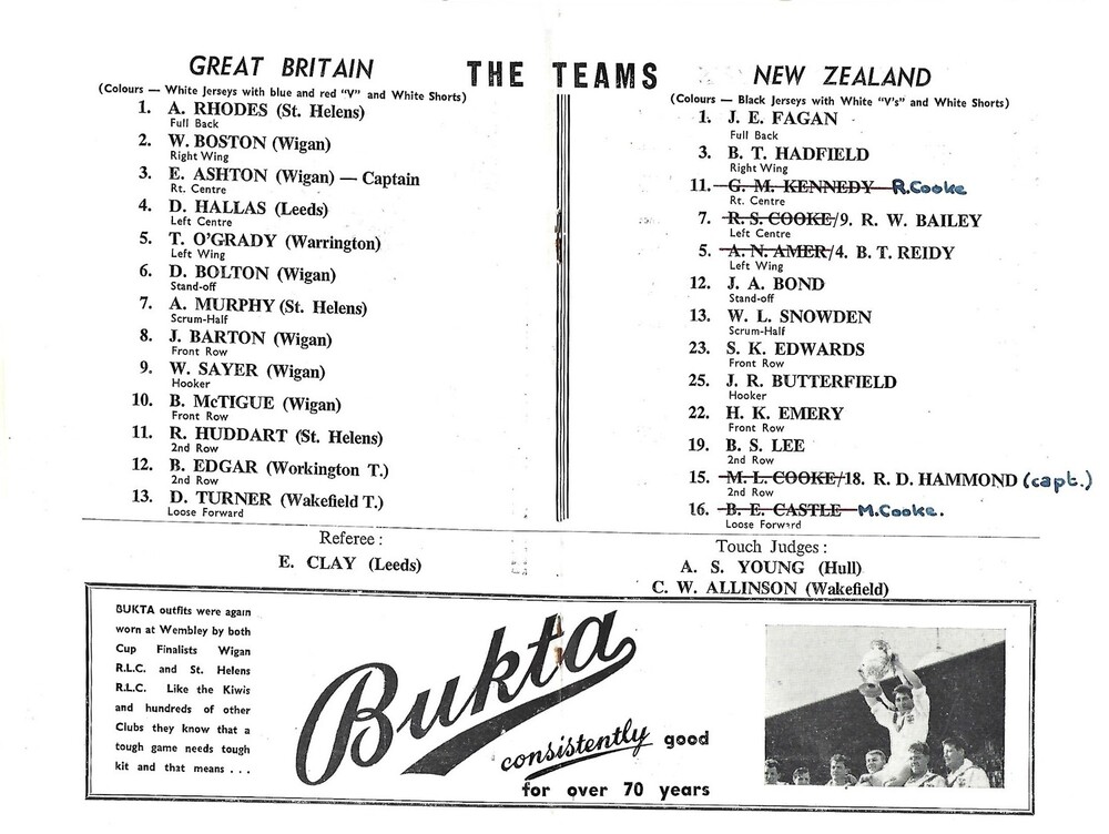 1961 Great Britain v New Zealand First Test Match Rugby League Programme