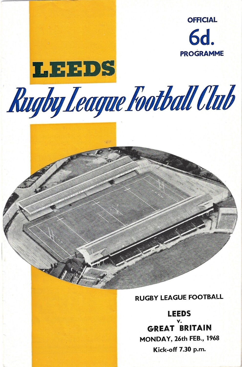 1967/68 Leeds v Great Britain Rugby League programme