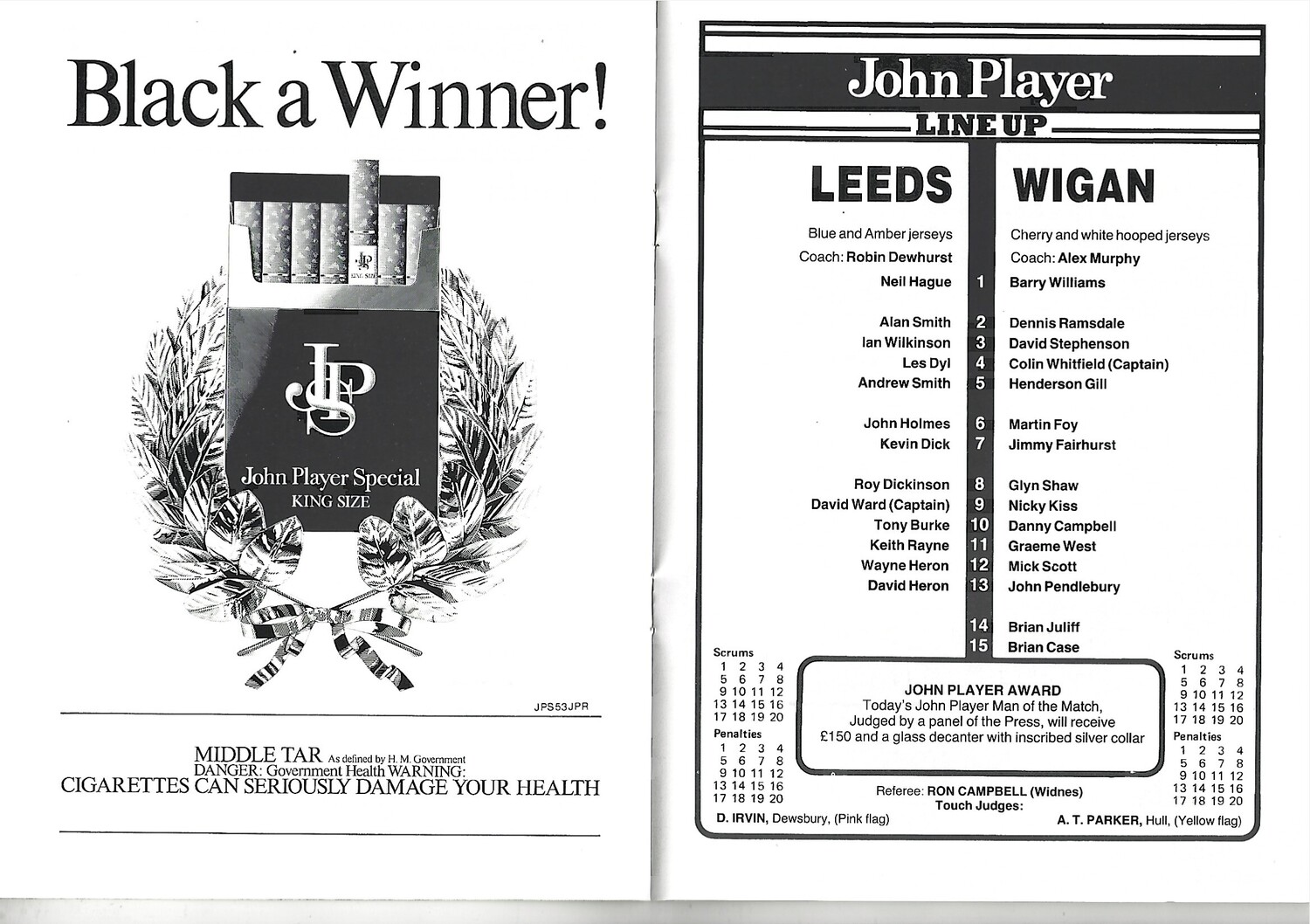 1982/83 Leeds v Wigan John Player Trophy Final Rugby League Programme