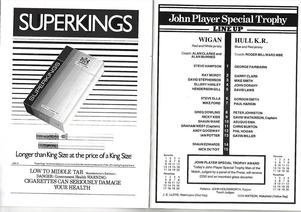 1985/86 Wigan v Hull Kingston Rovers John Player Special Trophy Final Rugby League Programme