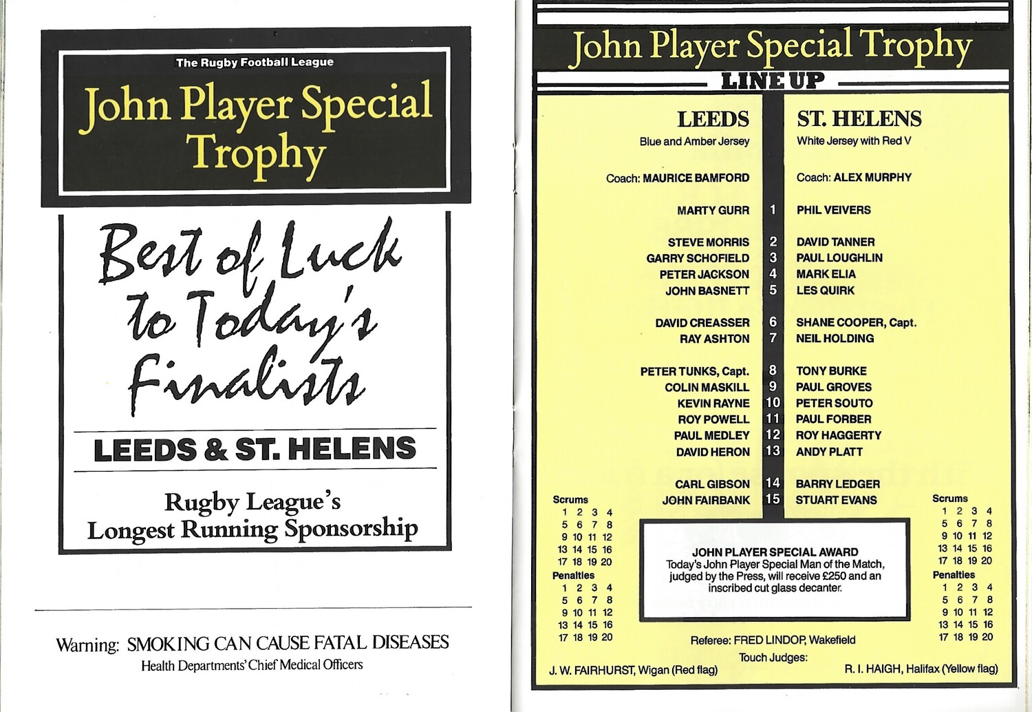 1987/88 Leeds v St. Helens John Player Special Trophy Final Rugby League Programme