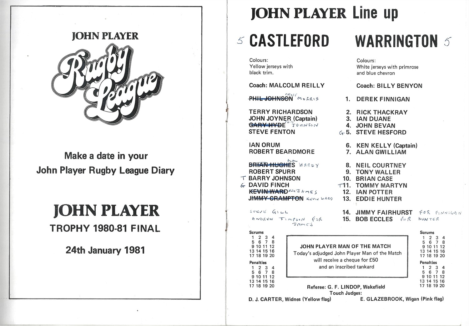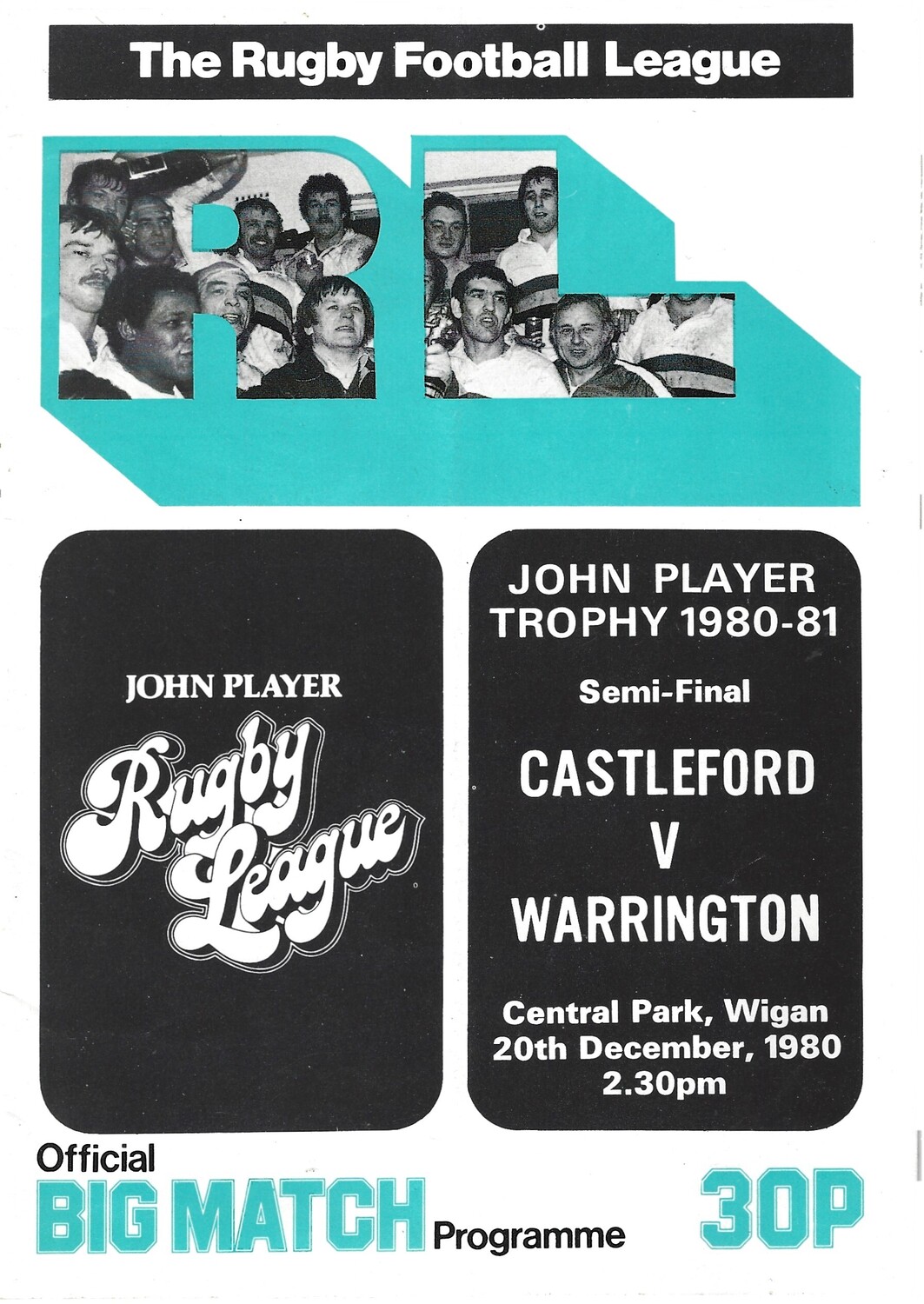 1980/1981 Castleford v Warrington (20/12/1980) John Player Trophy Semi Final Rugby League Programme