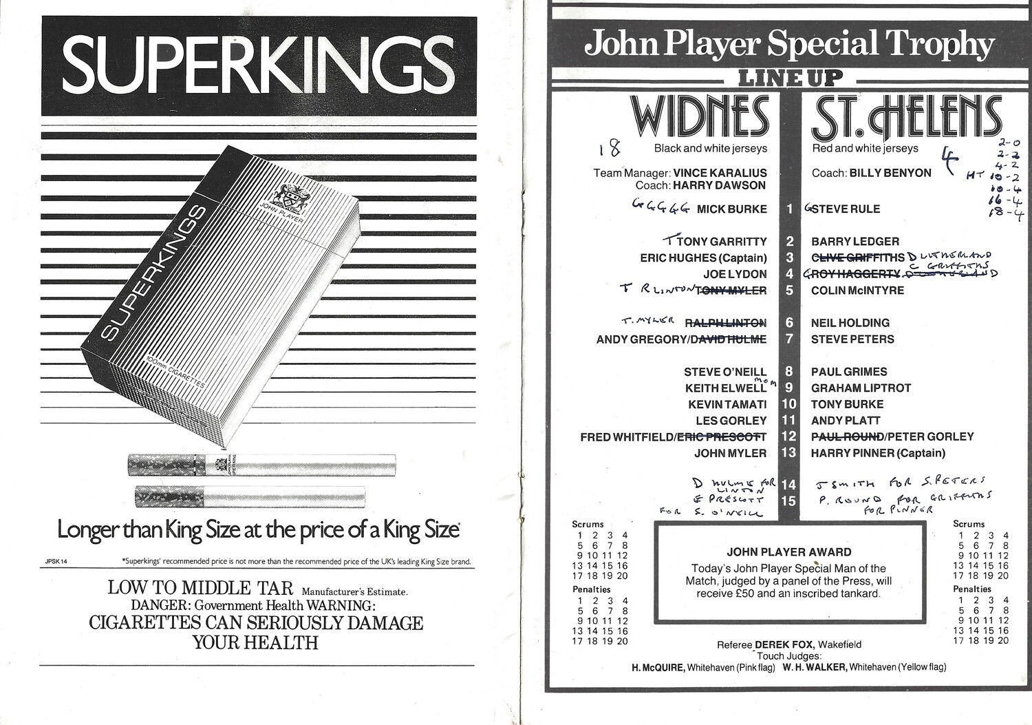 1983/84 Widnes v St. Helens (17/12/1983) John Player Special Trophy Semi Final Rugby League Programme