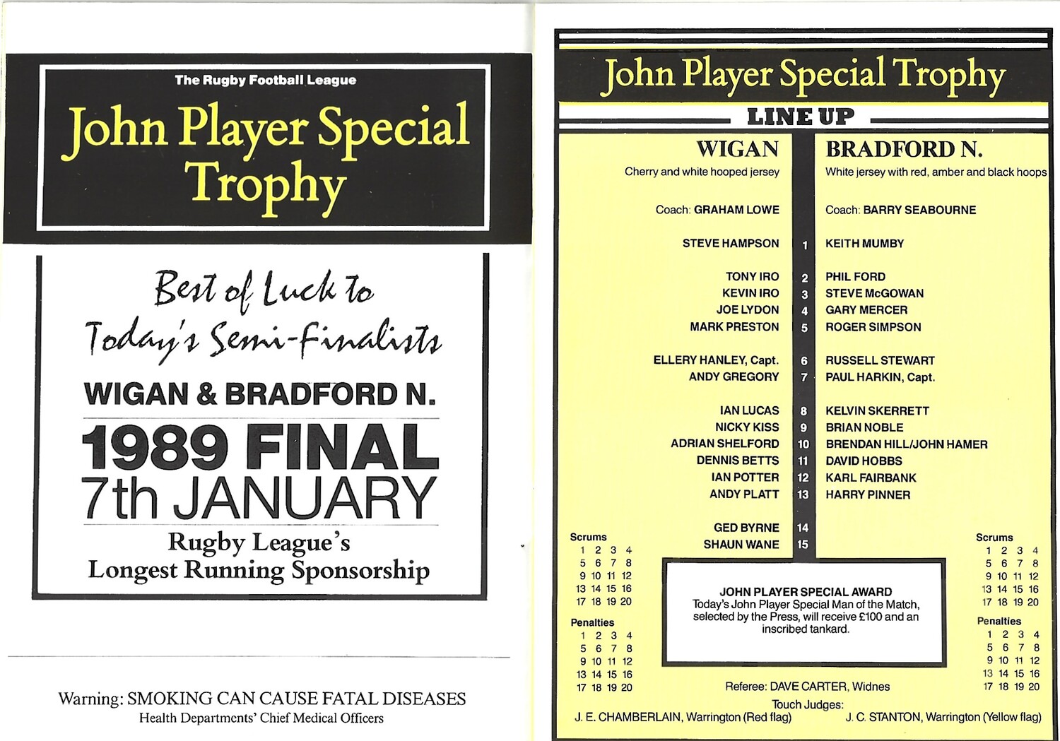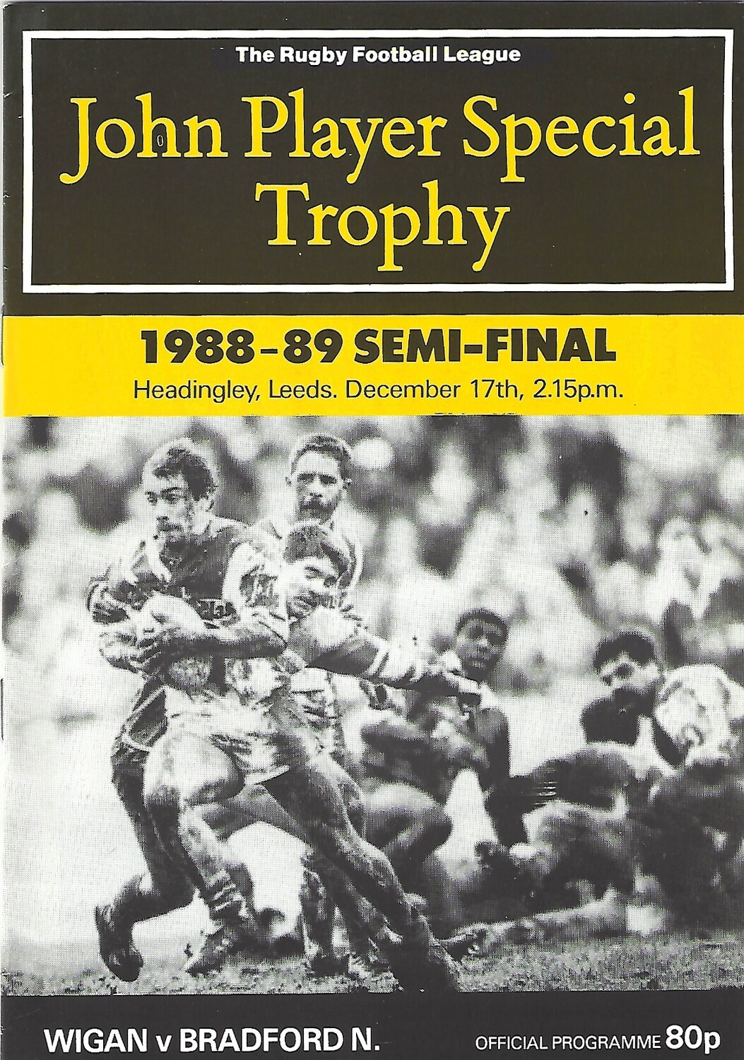 1988/89 Wigan v Bradford Northern John Player Special Trophy Semi Final Rugby League Programme