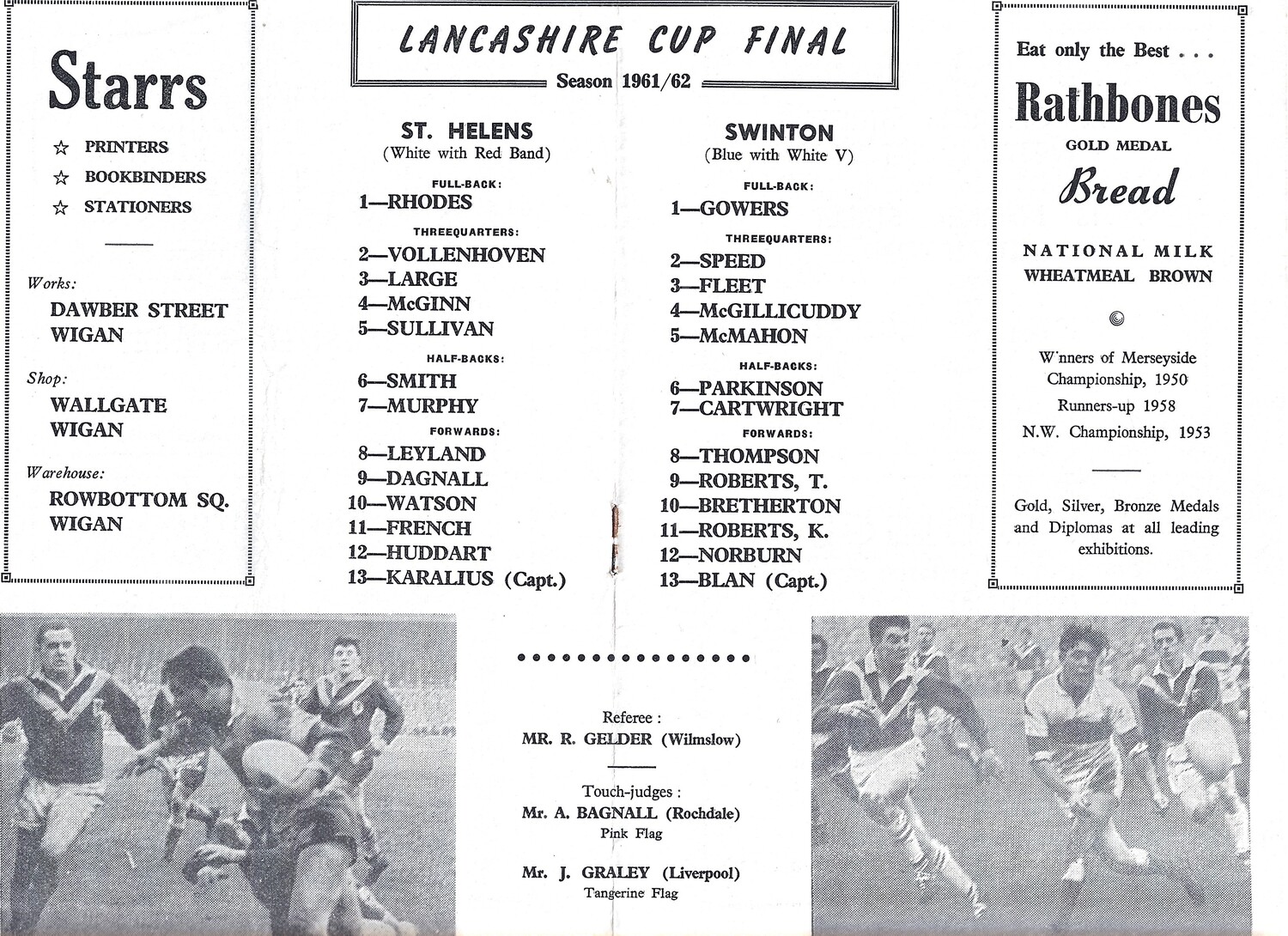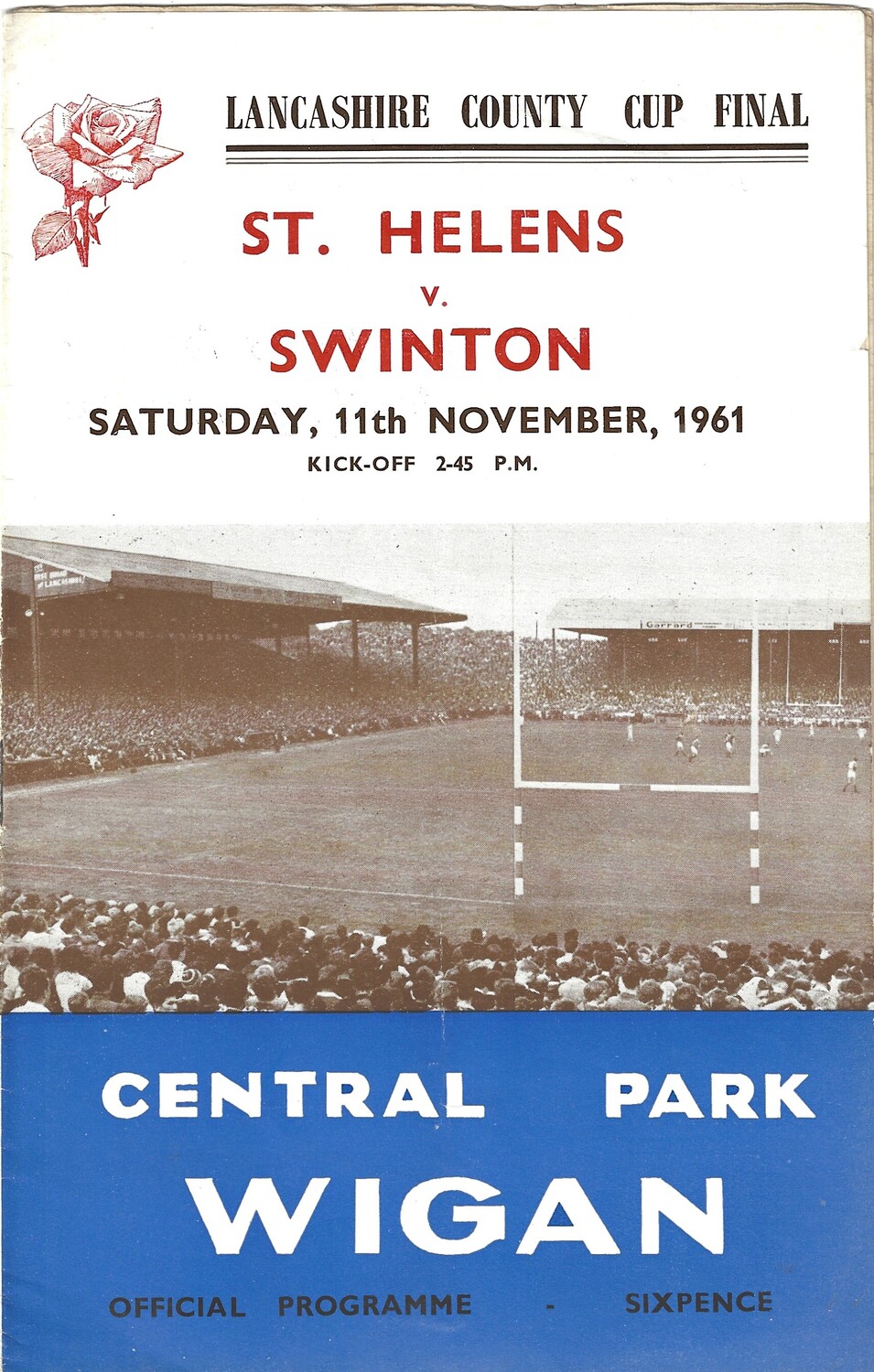1961 St. Helens v Swinton (11/11/1961) Lancashire County Challenge Cup Final Rugby League Programme