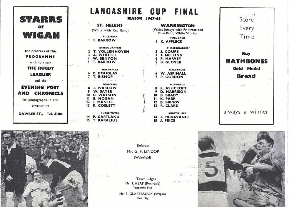 1967 St. Helens v Warrington Lancashire County Challenge Cup Final Rugby League Programme