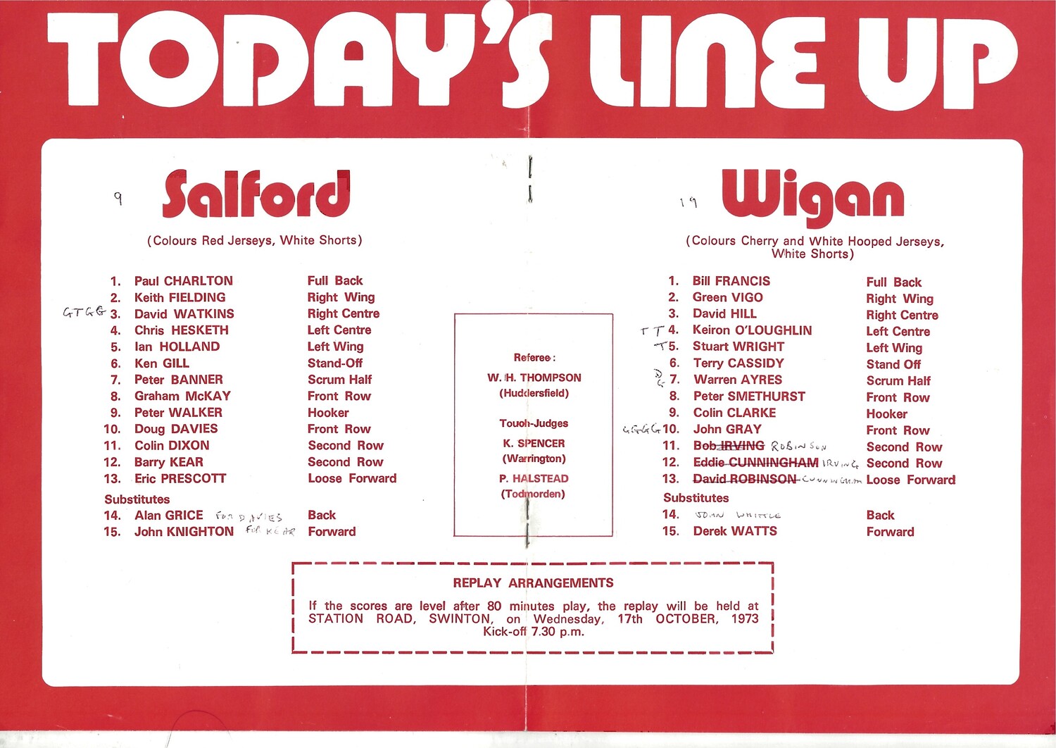 1973 Salford v Wigan (13/10/1973) Lancashire County Challenge Cup Final Rugby League Programme