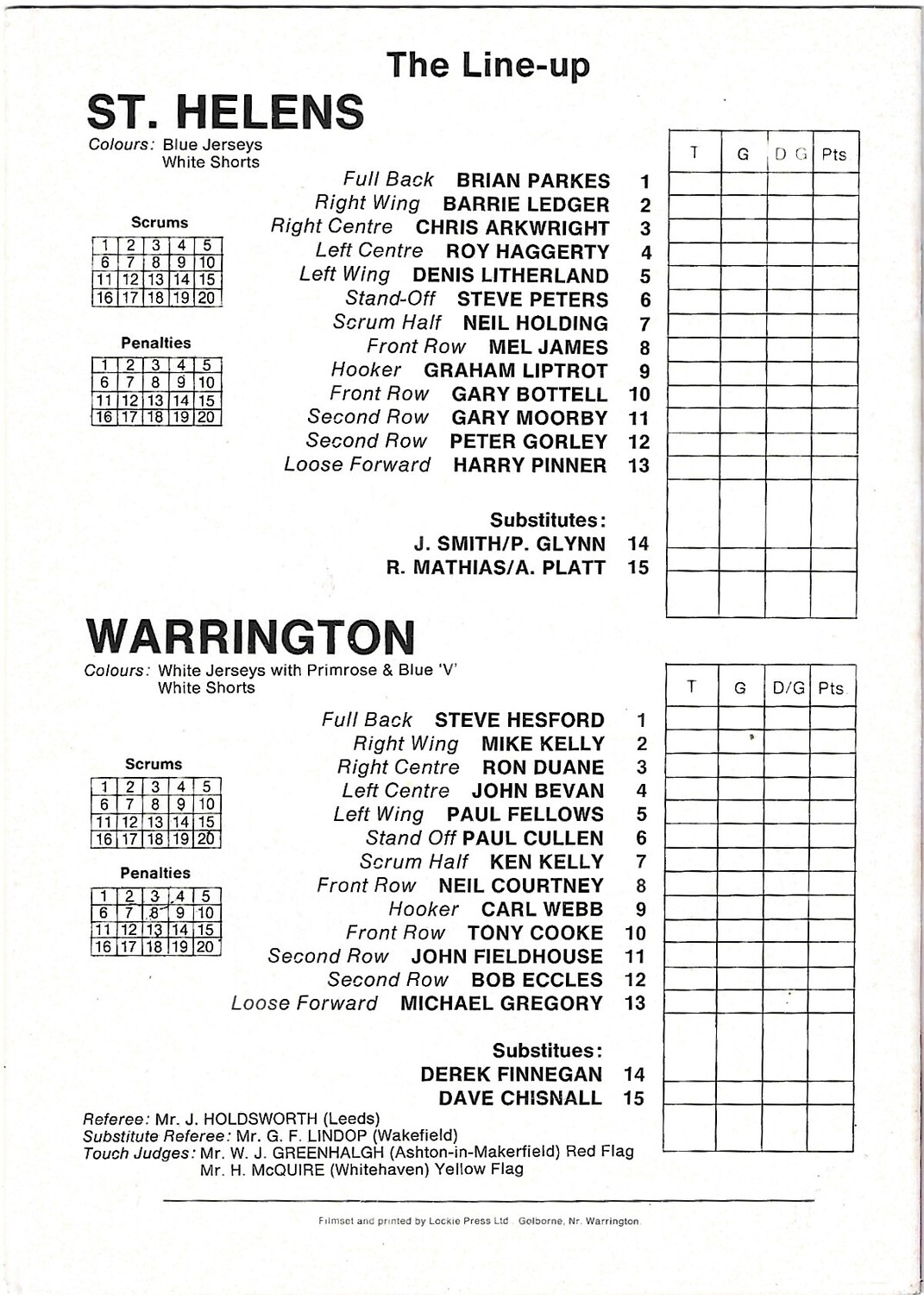 1982 St. Helens v Warrington Lancashire County Challenge Cup Final Rugby League Programme