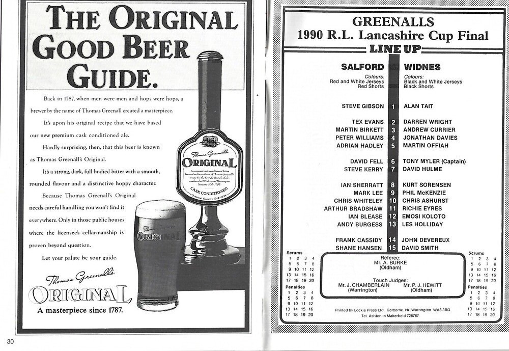 1990 Salford v Widnes Lancashire County Challenge Cup Final Rugby League Programme